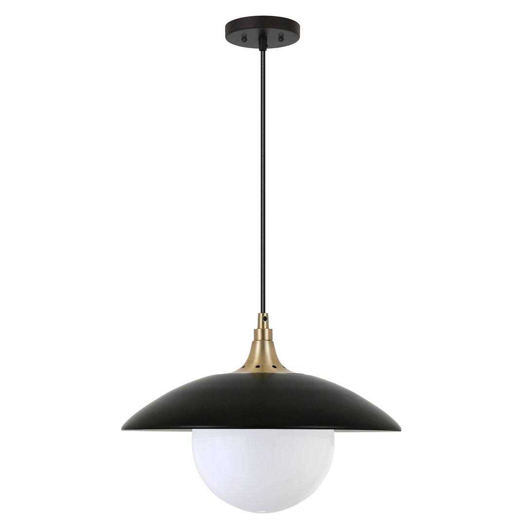 Modern style meets industrial elements with this single-light pendant. It’s crafted from metal with a wide-brimmed dome over a clear glass globe. A 60W bulb (sold separately) shines downward light over your dining table or entryway. Plus, it works with a dimmer switch for a seamless transition from daytime to night. Style this pendant solo, or pair it with another for a curated look over your kitchen island.