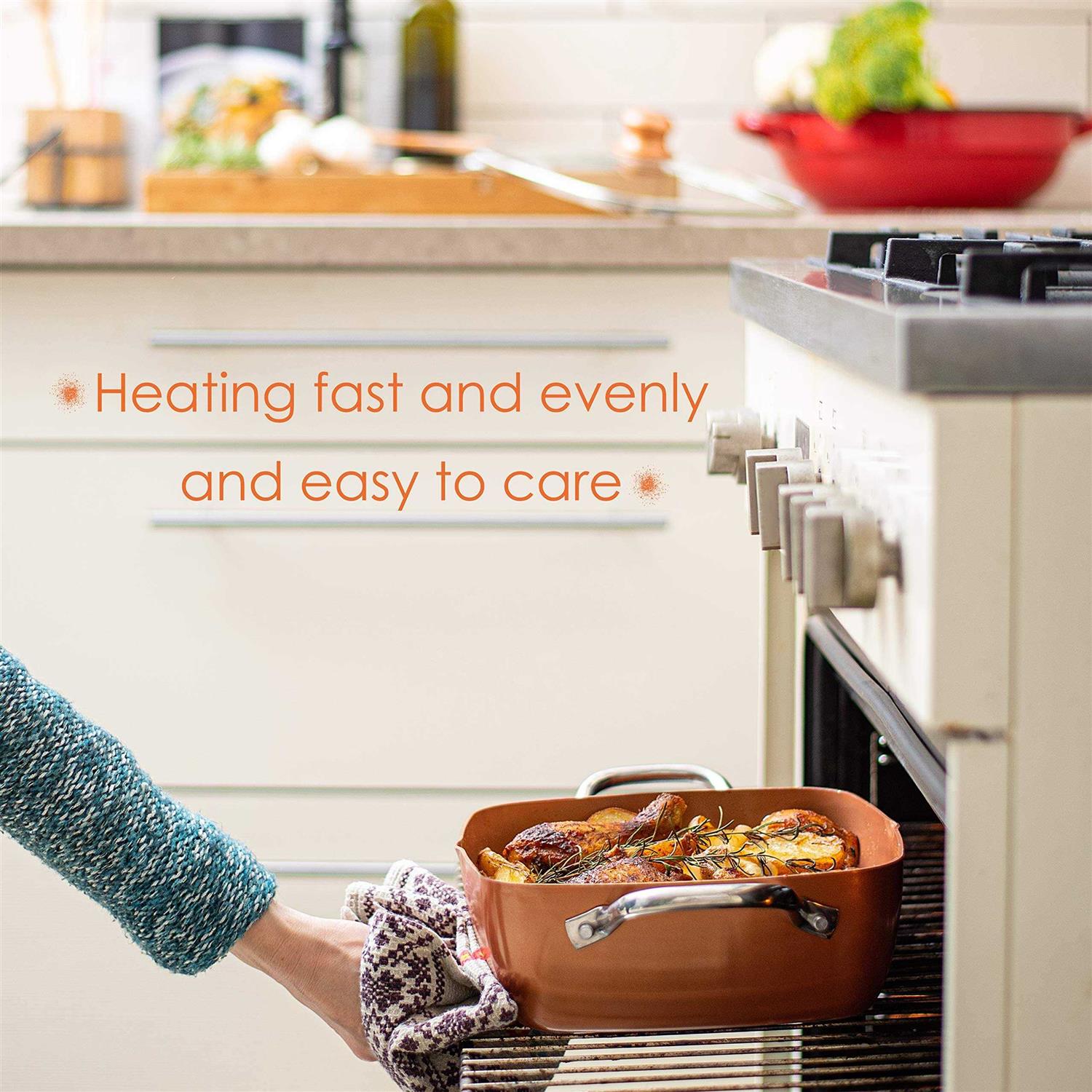 Moss & Stone Copper 5 Piece Set Chef Cookware Non Stick Pan Deep Square Pan