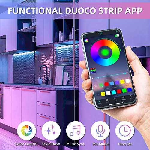 Smart night lights :120 degree sensing within 3 meters and built-in human body passive infrared (PIR) motion sensor light with automatic shut-off timer.Switch 4 different timers (30s/75s/150s/380s) on the motion sensor according to your personal needs. Continue Trigger feature to keep the motion light on and automatic turn off within preset timer after leaving.Use the remote control to adjust the brightness of the bed light. Multi control mode:1 APP control: Download “duoCo Strip” APP, open the Bluetooth of your phone to automatically connect to the strip, you will be able to control the bed light and mode through your phone. 2Button control: you can control the light timer and light mode.3Motion activated control: The light strip is adjusted by auto-sensing, and the soft light will turn on when walking down and passing the bed.4Remote control:no need to align the sensor can remotely change a variety of colors. Light with music sync:When the strip light is turn on, you can open the music sync function through the music mode on the APP. Turn on the local music on your phone, and the lights will dance with the music. Mic mode, the light will be sync with the external environment sound. You can control two or more light strips by setting groups. Motion sensor light : Our motion sensor lights using strong acrylic-adhsive tape and fit for any clean, dry surface without worrying about the strip lights falling off in a short time. USB powered design is very convenient for carrying and daily use. Motion sensor led light strips work with 5V USB adapter. It has extremely low heat, it can be touched by hand and is safe for children. Ideal Home Light :Use comfortable and vibrant lighting to illuminate your indoor closets, bedrooms, cabinets, corridors, kitchens, stairs, bathrooms and living rooms. You will get: 1*9.84feet motion sensor light, 1*remote control. There are 11 lighting modes in the motion sensor LED light strip,7 color modes or 4 dynamic color modes,total 9.8ft,Great way to upgrade your bed,cabinets,closet, desk, TV back, bookshelf, wardrobe, display case etc