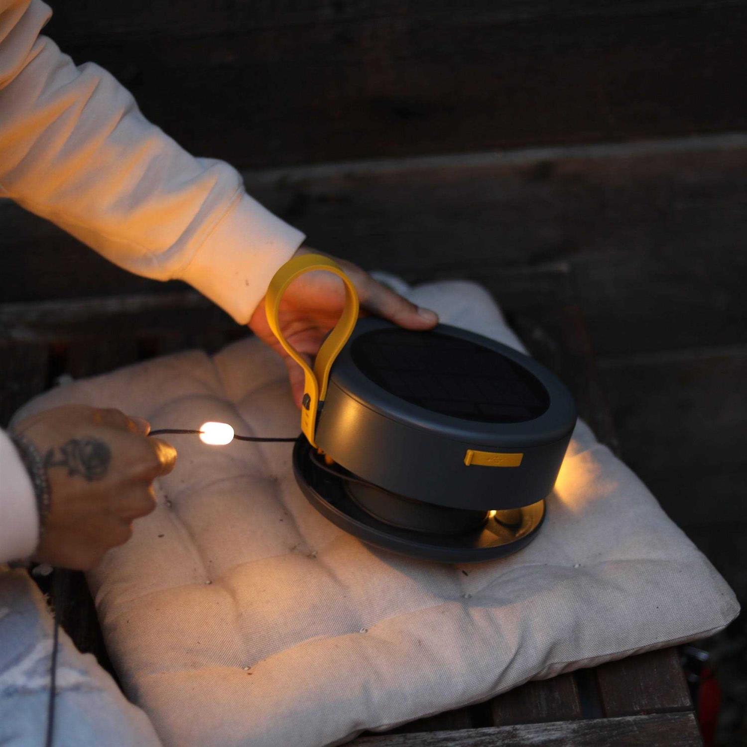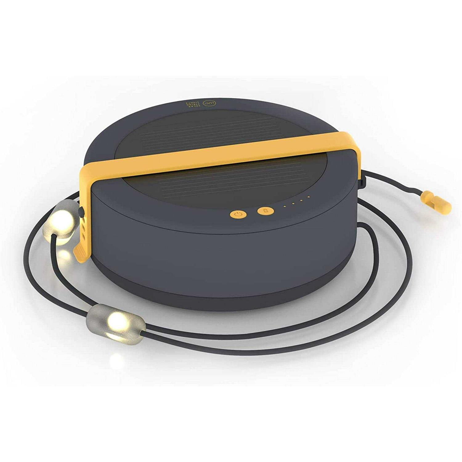 Powerful and expansive, Luci Solar String Lights + Power Hub provides up to 40 hours of energy-efficient light on a single charge. Featuring a 44 ft nylon-braided cord, 20 shatterproof bulbs, and 40 warm white LEDs, and a detachable 4,000 mAh rechargeable battery with mobile charging capabilities. Perfect for camping!