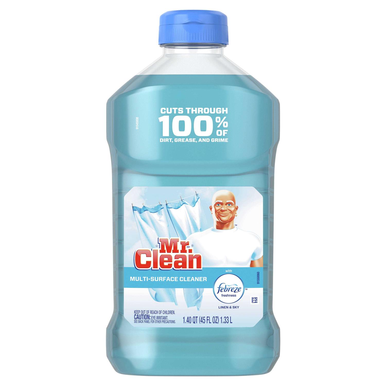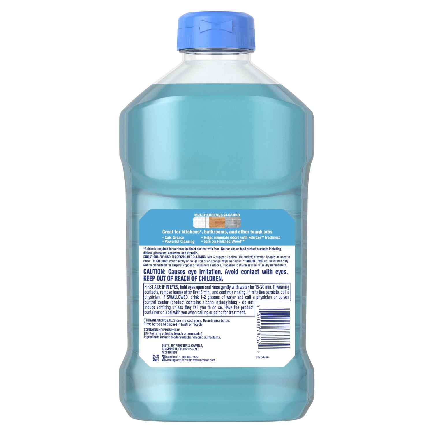 Cuts through 100% of dirt, grease and grimeMr. Clean multi-purpose cleaner works all around the house! Use on everything from linoleum, to tile and finished hardwood floors, to toilets and bathtubs, and even garbage cansMr. Clean is also available in Gain Original Fresh and antibacterial Summer CitrusGreat for use on sinks, counters, stoves and more!
