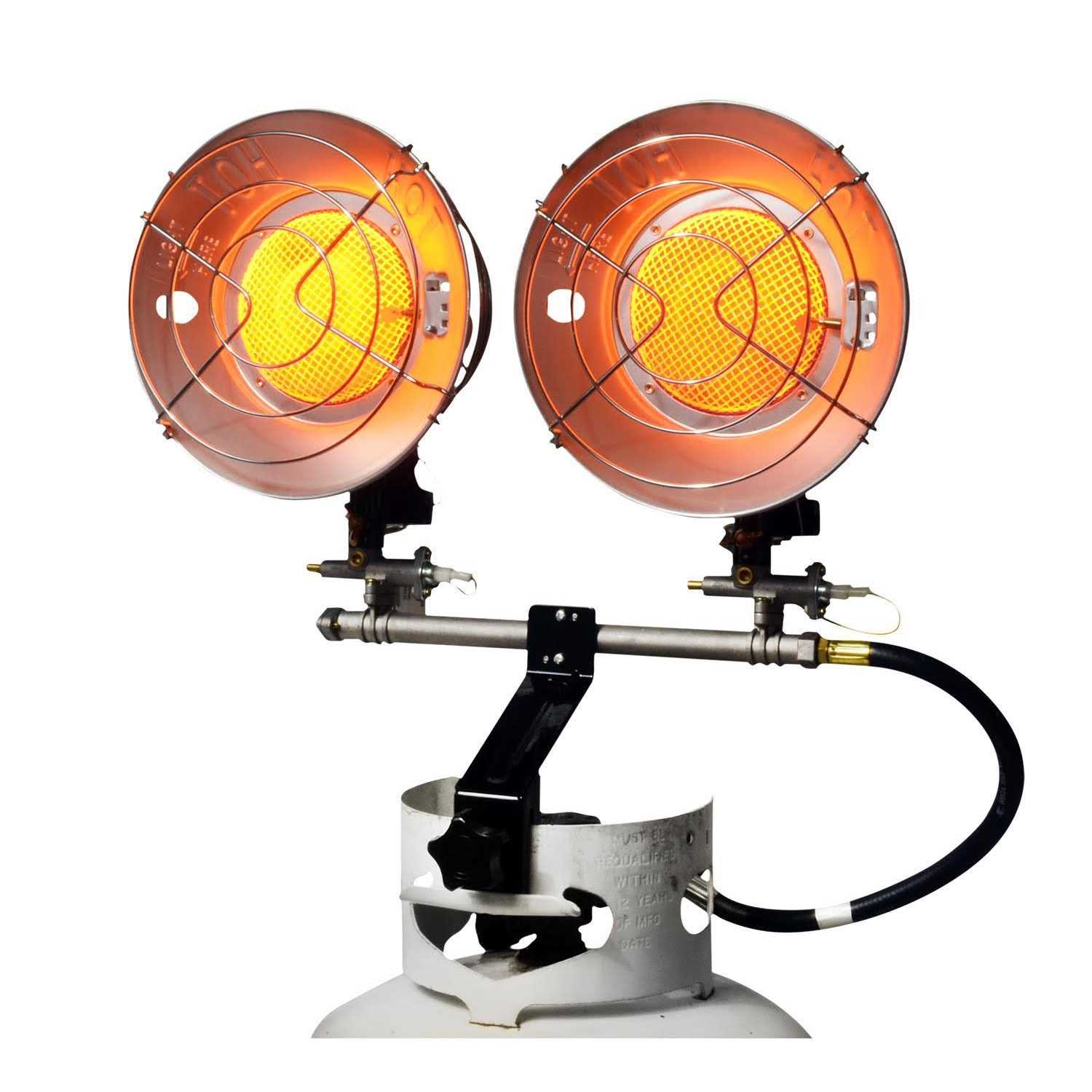 The radiant Mr. Heater 30,000 BTU Double Tank Top Heater is the perfect solution for a variety of outdoor heating applications. Use it on construction Sites, loading docks, sporting events, hunting, fishing, and camping. This portable heater is constructed with high quality chrome and stainless steel components to bring you reliable heat on the go. Adjustable Regulator – Swivel Head Design With its adjustable high-medium-low regulator and soft nose P.O.L., the 10-000 to 30,000 BTU Double Tank Top Heater from Mr. Heater is easy to use and quick to set up. Its adjustable swivel head design allows you to put heat precisely where you want it. Moreover, its high grade mesh brings you longer lasting durability while the unit’s standard safety shut-off switch brings you peace of mind. Features 10,000 – 30,000 BTU per hour For use with propane gas Hi-med-low regulator Two Tip-over safety shut-offs Operates one or two burners for multiple heat output combinations Soft Nose P.O.L. Mounts on 20 lb. propane cylinder Polished chrome reflector No tool needed, hand wheel installation All components replaceable