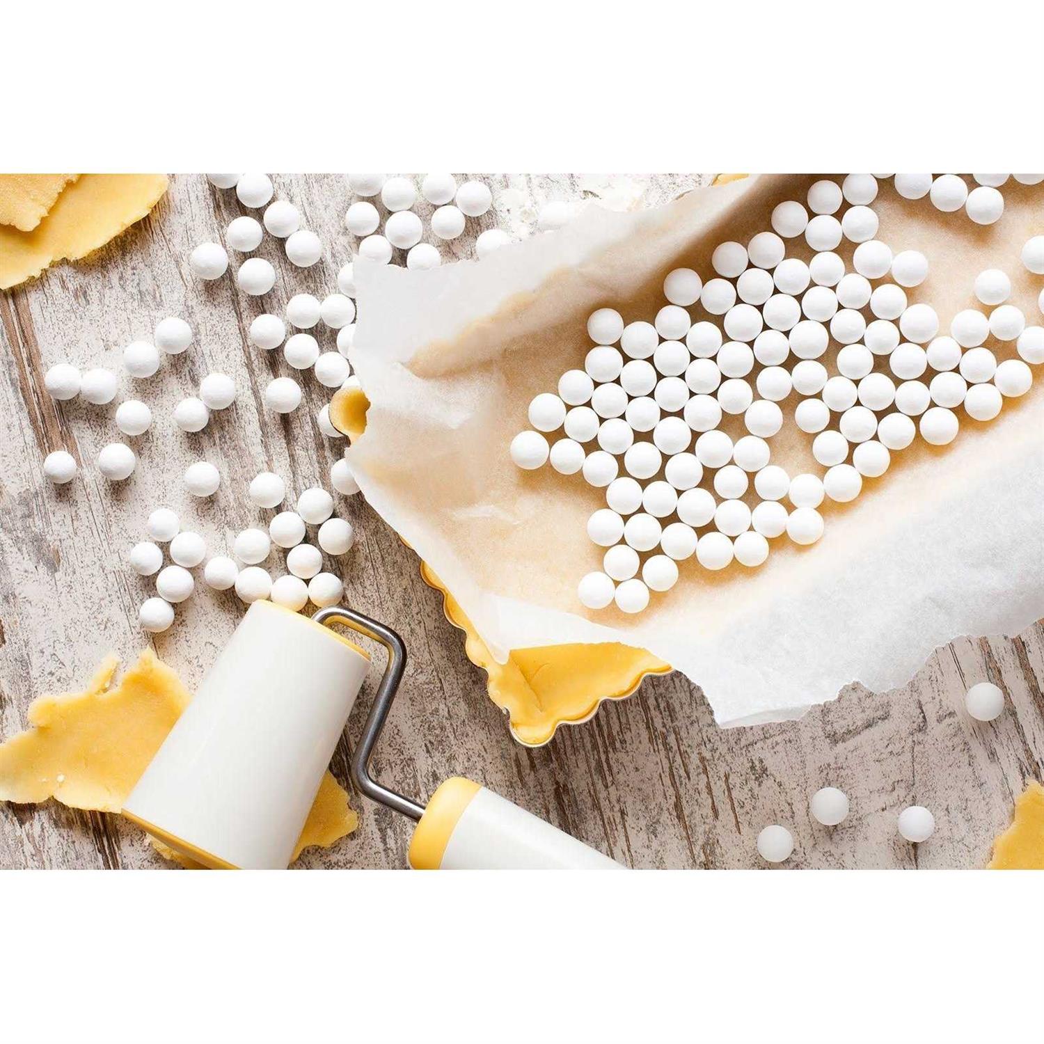 Bakingemptypieshells, orblindbaking, couldn’tbeeasier! It’sausefuladditiontobakingaccessories, theindividualbeadsareeasytoplaceandarrangeasneededforanypiesize. Heattransfersevenlysocrustsbaketoaperfectgoldenbrown.
