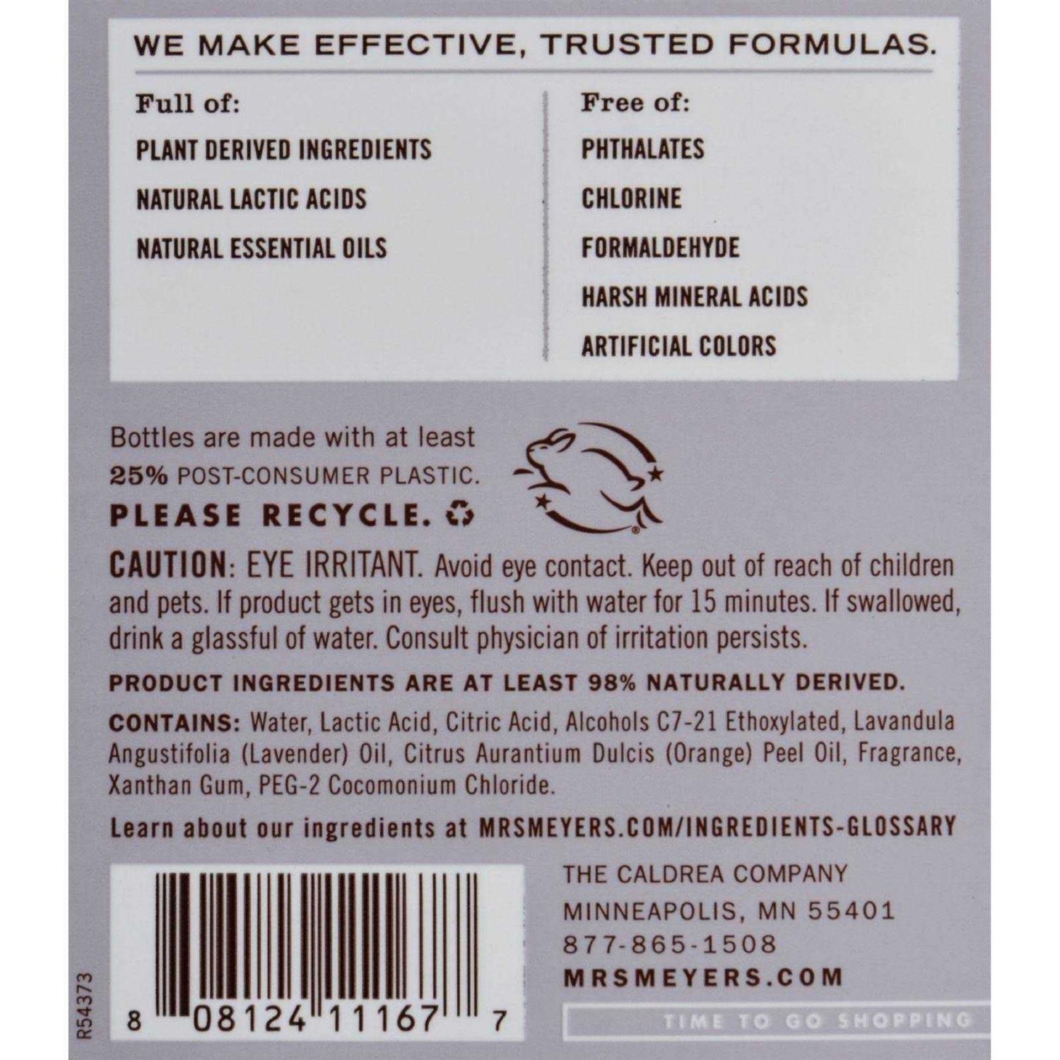 Size :24Ingredients are at least 98% naturally derived.Contains septic-safe ingredientsBiodegradableMrs. Meyers Clean Day Toilet Bowl Cleaner makes this unpleasant cleaning chore more bearable. The cleaner is chlorine free and uses no solvents, yet cleans and deodorizes your toilet bowl like never before. The formula is made from 98% naturally-derived ingredients, mainly plant-derived extracts and is completely biodegradable and environmentally safe.