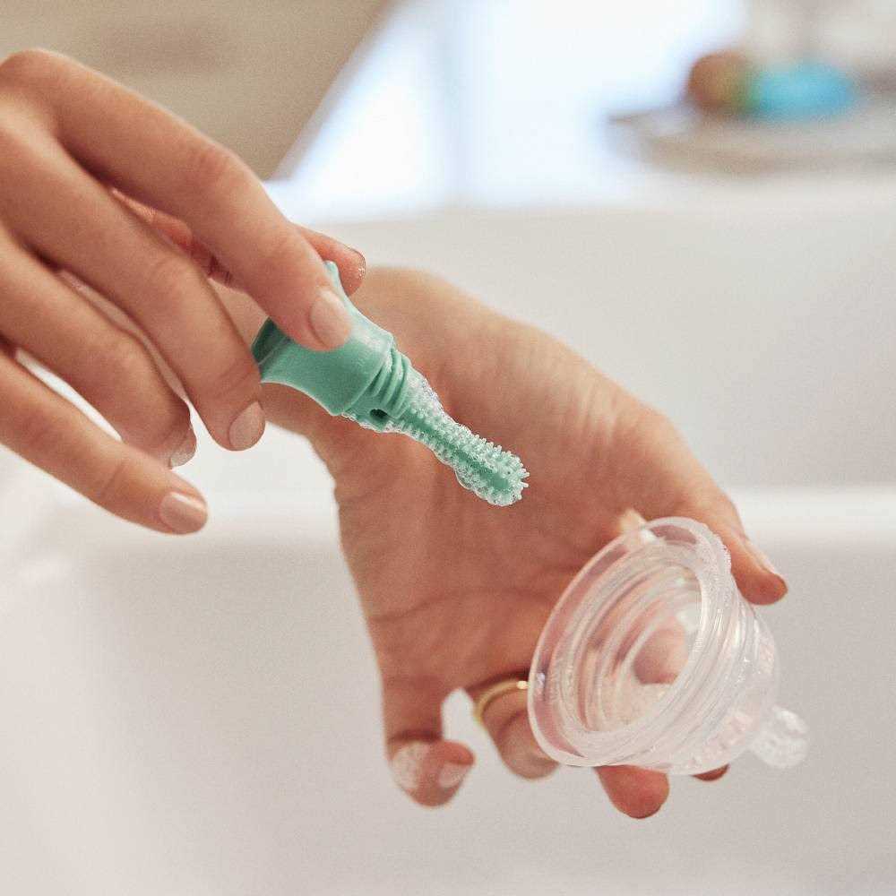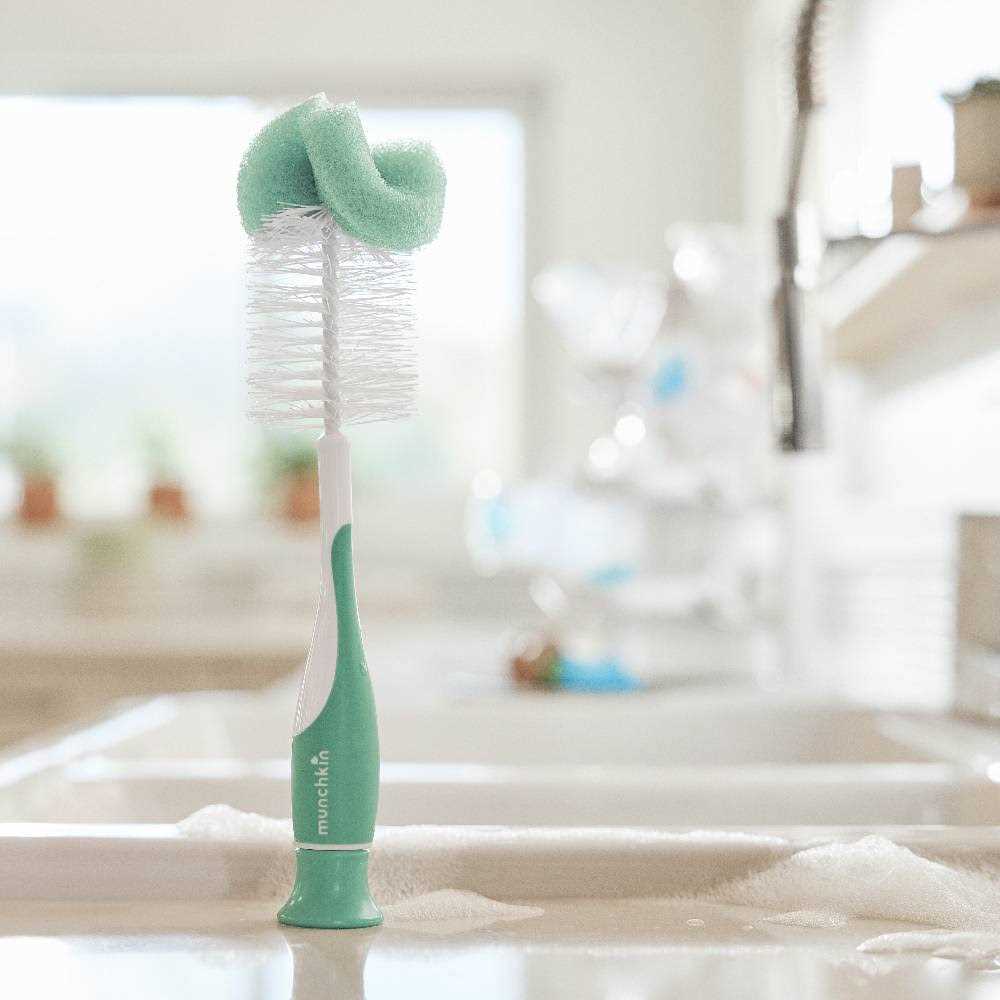 Washing and sanitizing your baby’s bottles is a daily chore that’s essential for safety and health, but it doesn’t have to be a bore. Munchkin’s Sponge Bottle Brush makes bottle cleaning quicker and easier, so you can spend less time at the sink and more time with your precious little one. This 2-in-1 brush is a bottle brush and nipple brush in one, so you can clean every inch of your baby bottles with just one handy tool. The sponge tip helps you reach all areas with a sudsy swipe, while the non-slip handle gives soapy hands the right grip while cleaning. The only thing dropping will be the amount of time you spend cleaning bottles! The brush base sits upright on your countertop when you’re done, airing out quickly and keeping your brush far away from germs.