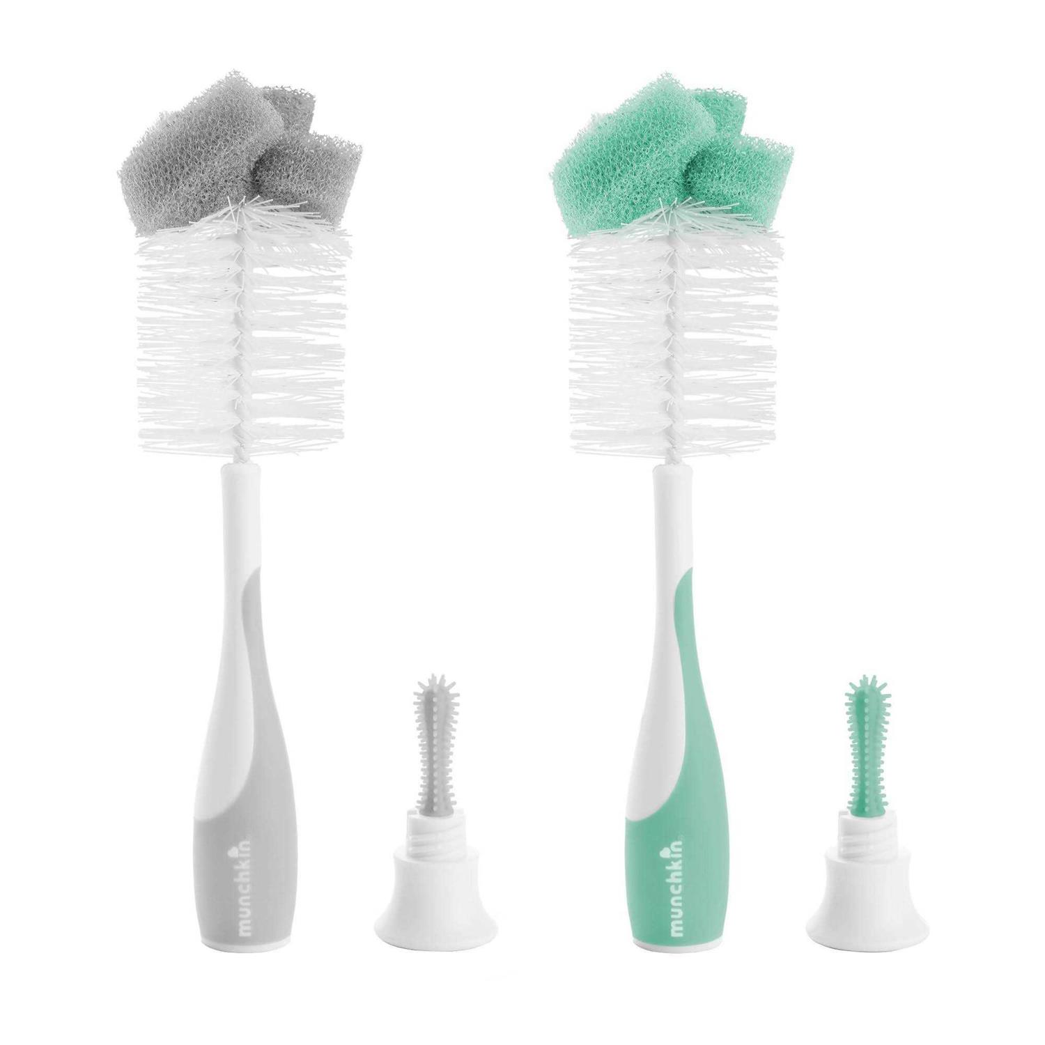 Washing and sanitizing your baby’s bottles is a daily chore that’s essential for safety and health, but it doesn’t have to be a bore. Munchkin’s Sponge Bottle Brush makes bottle cleaning quicker and easier, so you can spend less time at the sink and more time with your precious little one. This 2-in-1 brush is a bottle brush and nipple brush in one, so you can clean every inch of your baby bottles with just one handy tool. The sponge tip helps you reach all areas with a sudsy swipe, while the non-slip handle gives soapy hands the right grip while cleaning. The only thing dropping will be the amount of time you spend cleaning bottles! The brush base sits upright on your countertop when you’re done, airing out quickly and keeping your brush far away from germs.