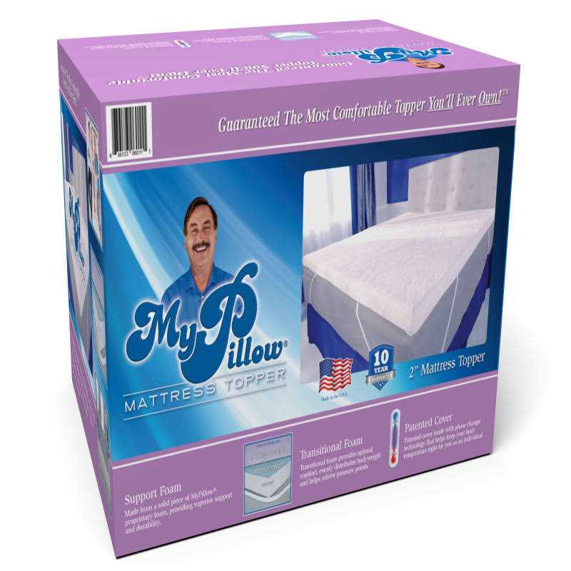 The new MyPillow 2″ Mattress Topper provides the ultimate support and comfort throughout the night. The mattress topper features a layer of MyPillow’s patented foam, which provides superior support and durability. Above sits a layer of transitional foam that not only provides optimal comfort and evenly distributes body weight, but also helps relieve pressure points as you sleep. Lastly, the removable cover is made from phase change material to keep your body temperature regulated throughout the night.