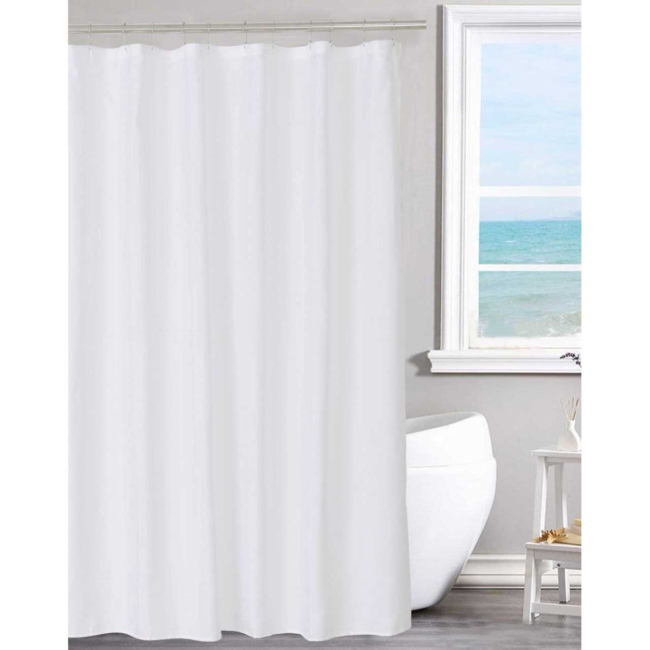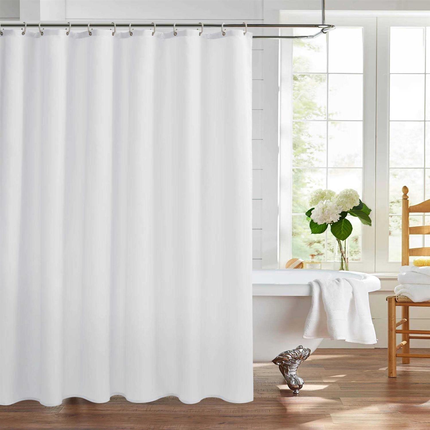 Hotel Luxury quality shower curtain liner brightens up your bathroom with soft, textured, luxury and spalike feel. Made from high quality polyester fabric material, this pure white shower curtain liner is of hotel quality, unlike PVC-laden vinyl and plastic alternatives. Closely knit thicker than ordinary fabric, this inner liner highlights its extraordinary quality and looks more clean, elegant and generous. This shower liner is treated to allow water glide off easily and dry quickly, good to resist soaking, machine washable can keep it fresh and clean. Reinforced top header increase strength at a degree that keep the curtain liner in place and ensure longterm use. 12 button holes could match with any decorative hooks, easy to hang. 2 magnets on bottom corners. Can be used as a shower curtain without any other clear liner inside, best replacement of PVC or PEVA for bathroom decoration. EASY TO CLEAN AND MAINTAIN. Machine washable. Wash cold by gentle cycle. Mild detergent needs to be used. Do not bleach. Tumble dry. Iron on permanent press setting. Product information: Measurements: 70 inch width x 72 inch Height inches (178cm x 183cm). Package: 10. 24 x 5. 51 x 1. 18 IN. Weight: 0. 8 pound. Remark: No hooks and rod included. Gender: male. Pattern: solid.
