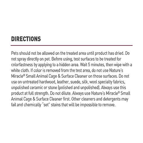 Bedding & Litter by Nature’s Miracle. Details:Nature’s Miracle Small Animal Cage & Surface Cleaner cleans and deodorizes cages. This bio-enzymatic formula penetrates to help break down and destroy embedded, tough stains and odors. With OdorCapture 360 technology, this unscented formula removes odors instead of simply masking them with perfumes. It will not leave behind strong scents that can irritate bird or small animal respiratory systems. Safe for pets and home when used as directed, this formula also cleans and deodorizes accessories, feeders, fabrics, furniture, carpet and other surfaces.