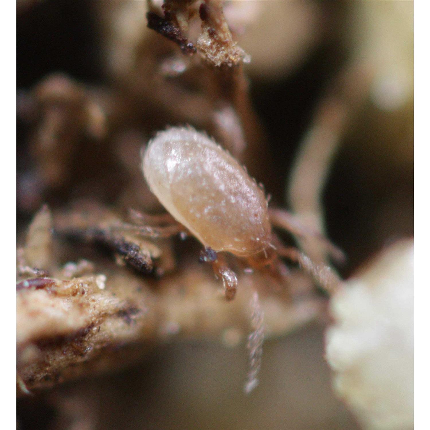 Hypoaspis is a native species of soil-dwelling mites which feed on small insects and mites. Adults are tan in color and less than 1 mm long. Hypoaspis are used primarily to control young larvae of fungus gnats in the soil or planting media. They also help control soil stages of thrips and may account for up to 30% of thrips control. Hypoaspis does not control shore flies of moth flies, but will feed on other soil organisms such as springtails and root mealybugs. They have been used successfully in bedding and potted plant production, seedling and cutting propagation and poinsettia stock. Hypoaspis adapts well to the various growth media and capillary mats used in plant production, but do not survive freezing of flooding conditions.