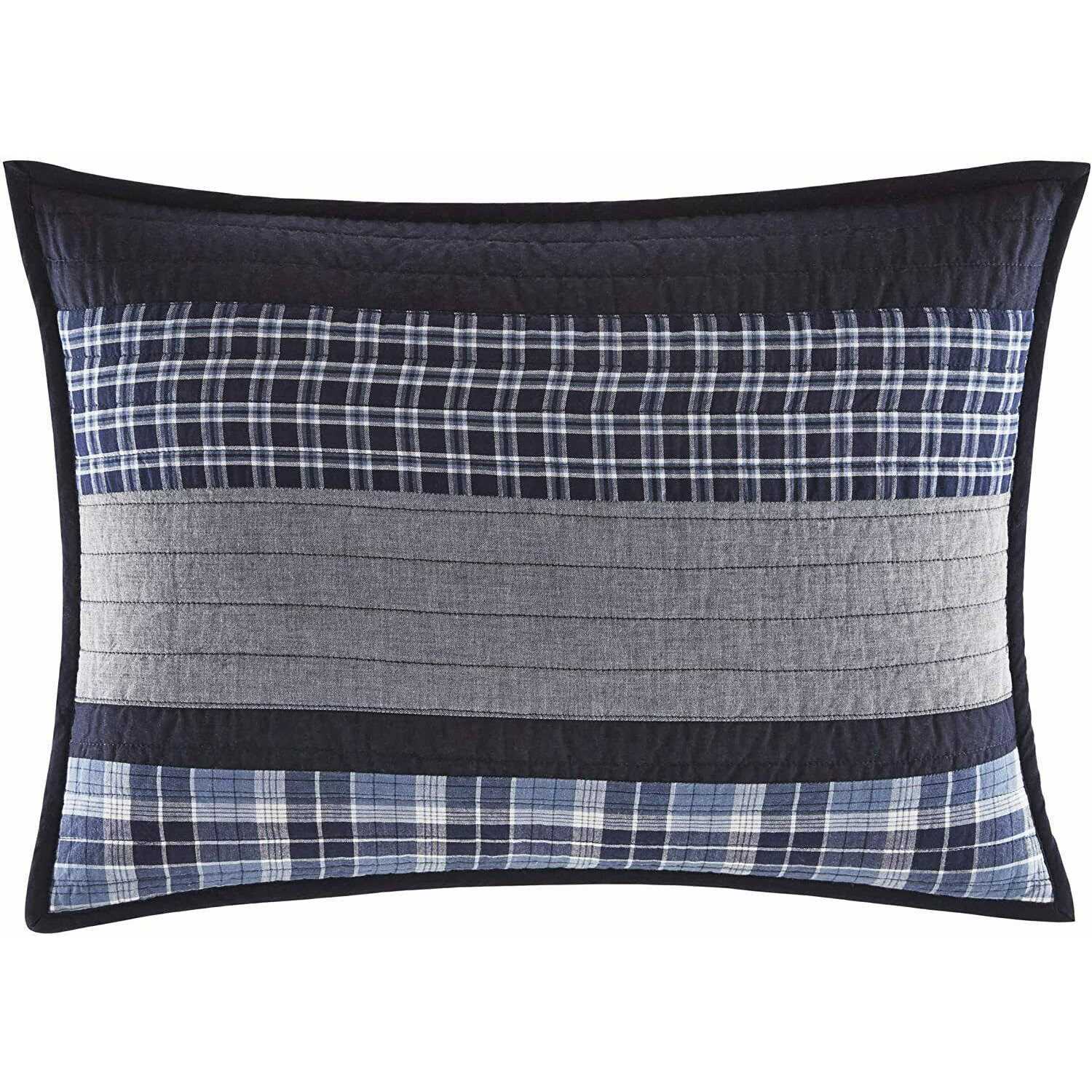 Nautica The stylish Adelson quilt collection from Nautica is is both casual and relaxed, with a modern tailored look that can fit comfortably in any bedroom. Pieced with 100% cotton yarn dye plaids and chambray solids, the sham(s) and coordinating quilt are constructed with a tonal blue and grey colour palette and completed with channel stitch quilting. Each standard sham is sold separately and the coordinating quilt is sold separately.