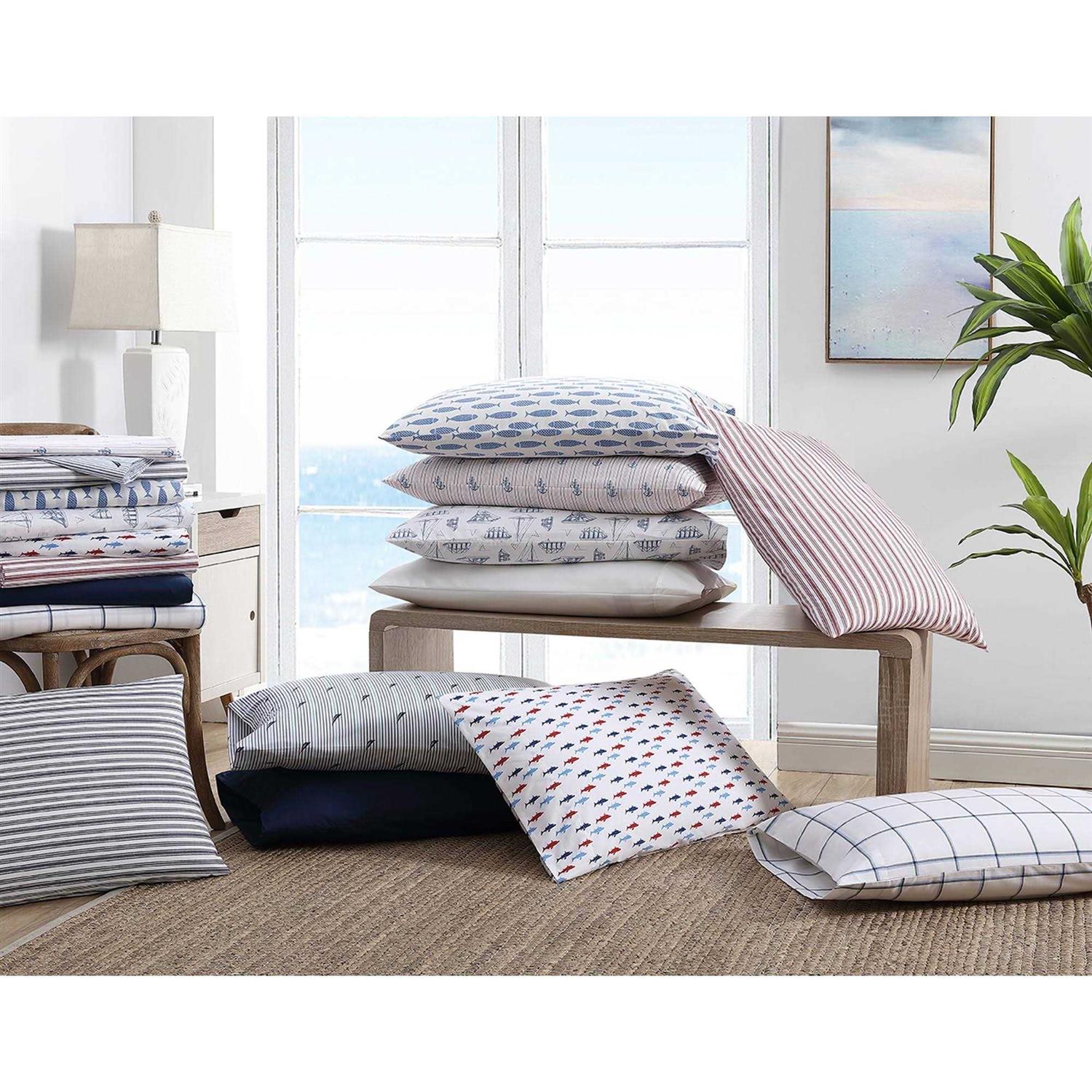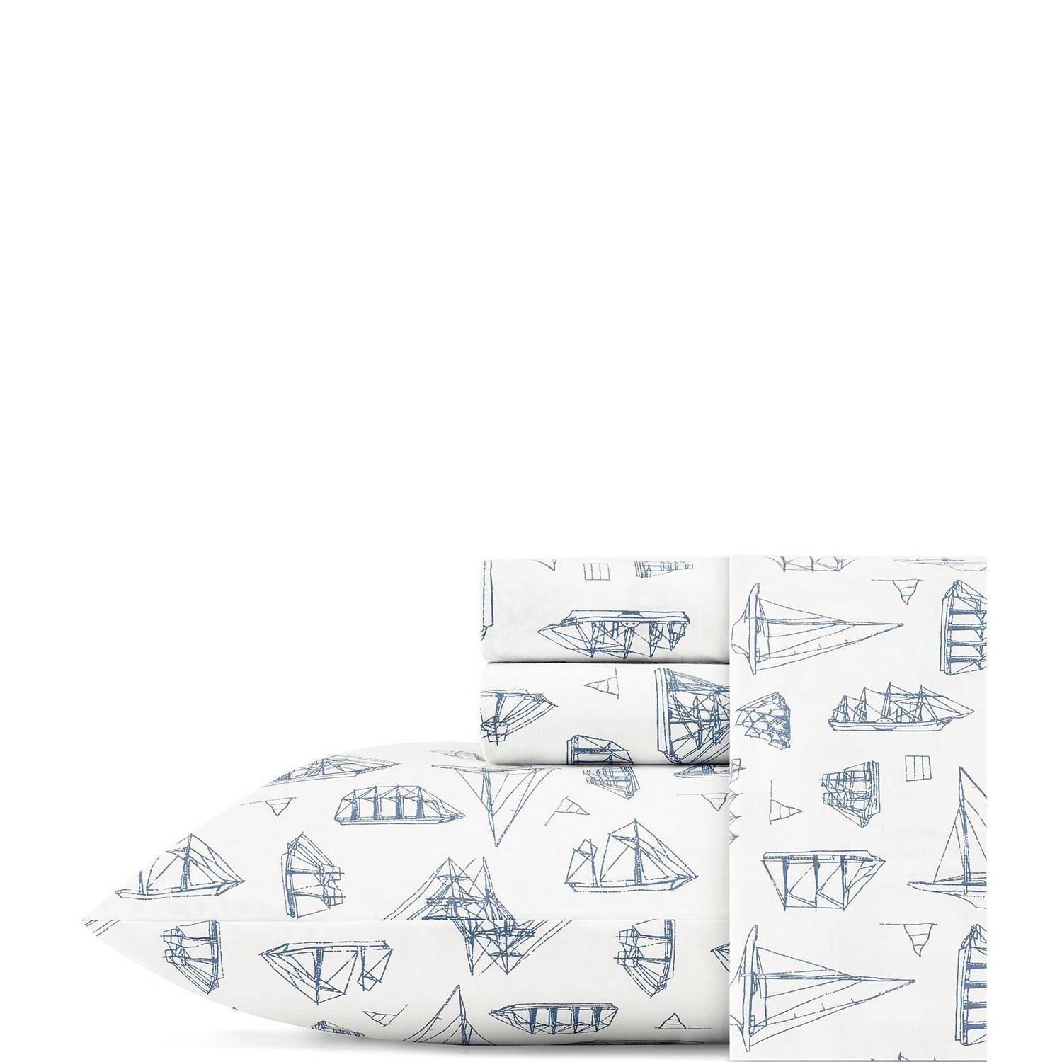 Add a nautical touch to your bedroom ensemble with this cotton-percale twin sheet set featuring a stencil sailboat print. Breathable, smooth, and lightweight, the crisp cotton construction is perfect for long-lasting comfort. This set includes one flat sheet, one fitted sheet, and one pillowcase.
