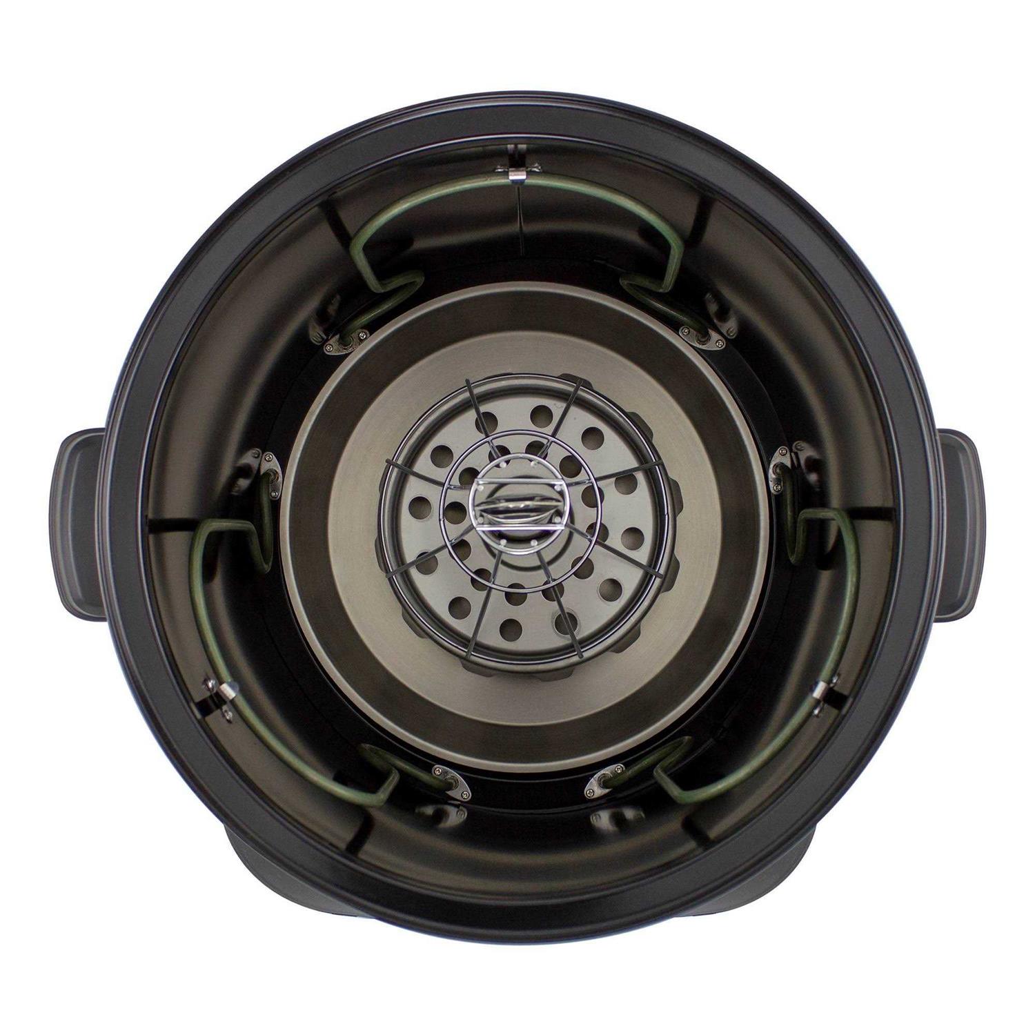 The new NESCO High Speed Roaster is the fastest and easiest way to cook turkey, chickens, roasts and all your favorite recipes. Innovative Roast-Ryte Technology uses infrared heating elements to evenly cook your turkey by maintaining the moisture on the inside while searing the skin to a golden-brown on the outside. The center heating element cooks from the inside out and when combined with the outer heating elements, makes the NESCO High Speed Roaster faster than a conventional oven. This oil-free, easy-to-use vertical roaster can cook up to an 18lb. bird in less than two hours, reducing cooking time by up to 40percent from a conventional oven. You’ll never have to worry about overcooking your bird, as the easy-to-read control panel has a digital timer with a default 120-minute cooking setting and auto-off function. Illuminated lights indicate when the heating elements are on and cycling. Clear glass on the lid lets you watch your meat cook without removing the lid and letting the heat escape. Removable and dishwasher safe, the cooking stand drip tray collects juices for making gravy. The interior surface is non-stick, making clean up easy. The NESCO High Speed Roaster is the most convenient and mess free way to cook your poultry and meat, allowing you to cook comfortably and enjoy more time with your family outside the kitchen.