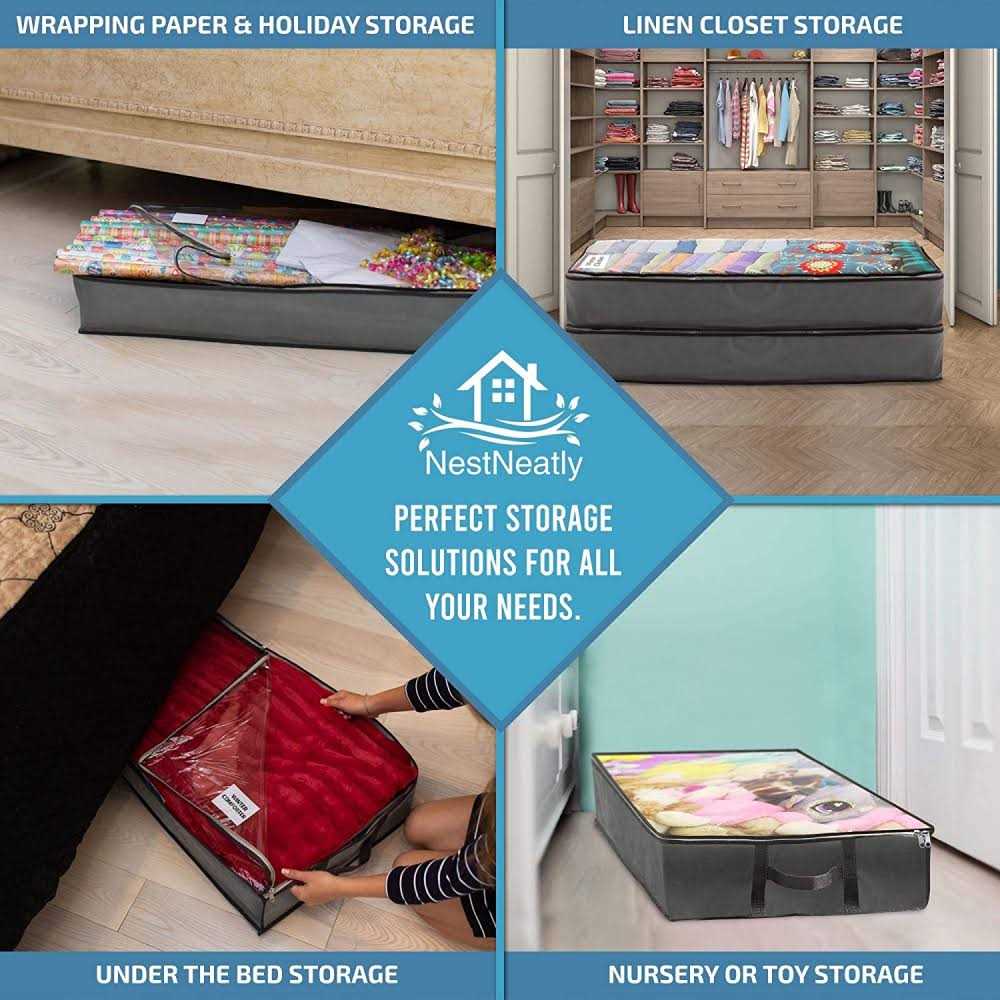 NestNeatly SmartCube Underbed Storage Bag 3 Large Bins with Reinforced Handles Foldable Containers