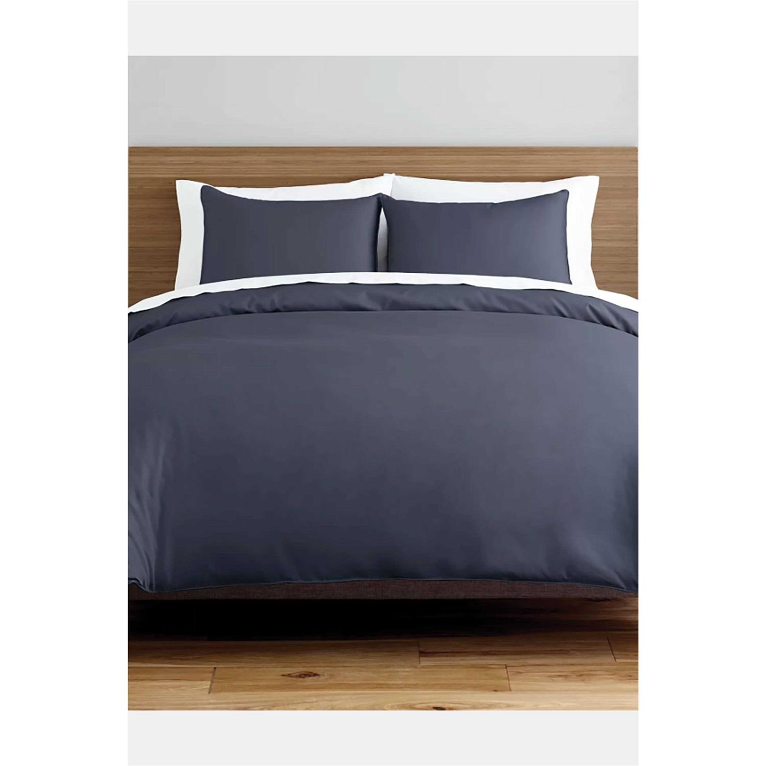 Soft and luxurious, the 450-Thread-Count Duvet Cover Set gives your bedroom a clean and classic look while providing silky smooth comfort. Made with cotton sateen for supreme softness and style, the included pillow shams complete its ensemble. SET INCLUDES – 1 Duvet Cover (insert sold separately), 2 Pillow Shams (1 for Twin Size) VERSATILE – The light and airy fabric is perfect for everyday use. Duvet features tie closures. SOFT CLASSIC LAYERS – Made with soft cotton sateen in stylish solid tones for a classic, clean look. BUTTON CLOSURE – Each duvet features button closures and the shams close easily with an envelope style closure. CARE INSTRUCTIONS – Machine Washable with like colors and tumble dry low. Dimensions Duvet Cover Pillow Shams Twin 68″ x 86″ 20″ x 26″ Full / Queen 88″ x 90″ 20″ x 26″ King 104″ x 90″ 20″ x 36″