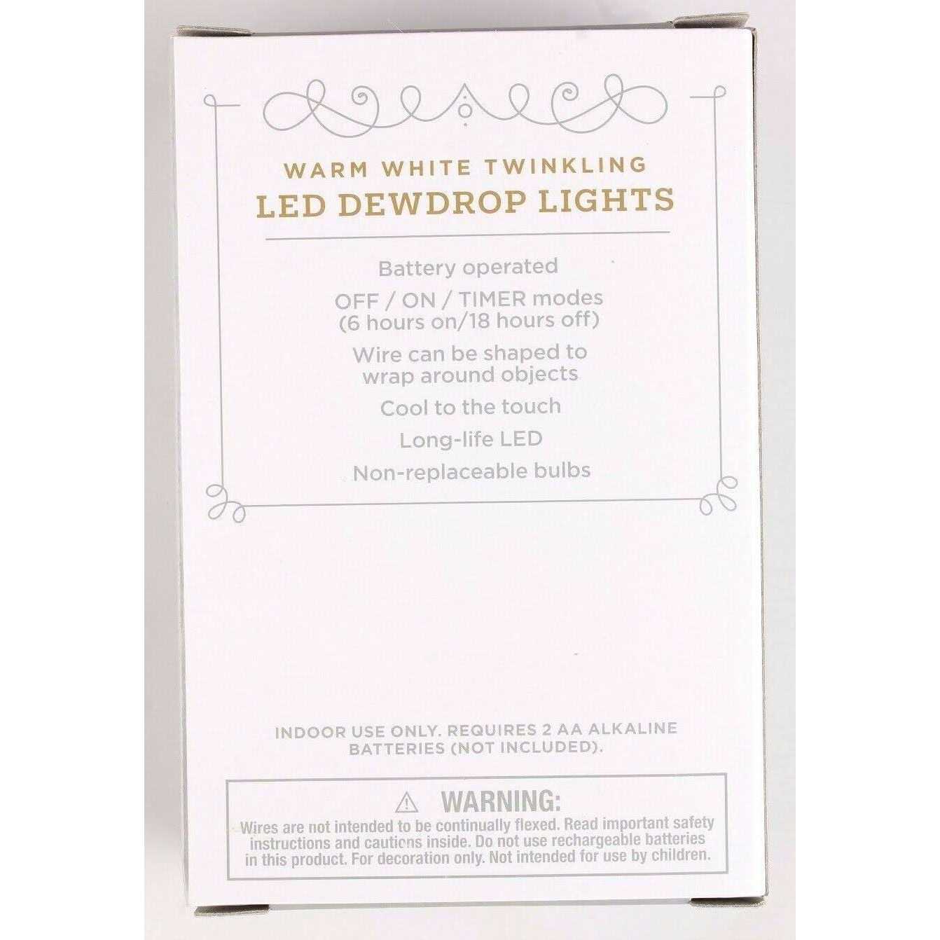 New Battery Operated Dewdrop Fairy Lights Twinkling White 6hr/18hr Timer
