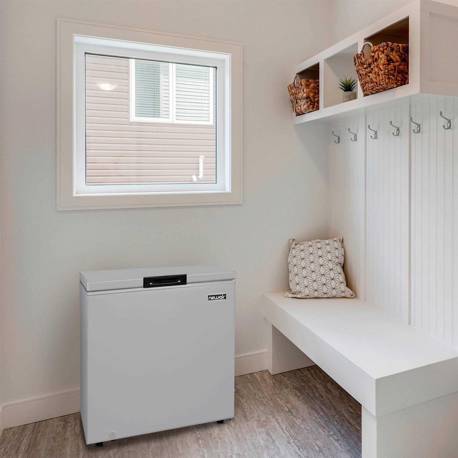 Ft. deep fridge freezer is small in size but big enough to hold meat, ice cream, and snacks for the whole family. Newair has the only deep chest freezer on the market with a digital control panel located on the top open lid. It’s the best small freezer with features like Fast Freeze Mode, a self-diagnostic system, a small storage basket, a defrost drain plug, and a quiet compressor. The digital temperature control panel lets you set the temperature between -14 F and 50 F. Fast Freeze Mode flash-freezes items for long-term preservation in this super low temp freezer. The compact design comes with an ice cream storage basket for hassle-free organization. The defrost drain at the front lets you easily manually defrost your top loading freezer. The stay-open lid and LED light make restocking your compact deep freezer a breeze.