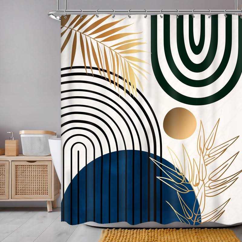 Newsely Mid Century Abstract Boho Shower Curtain 60wx72h Inch Neutral Plants Bot