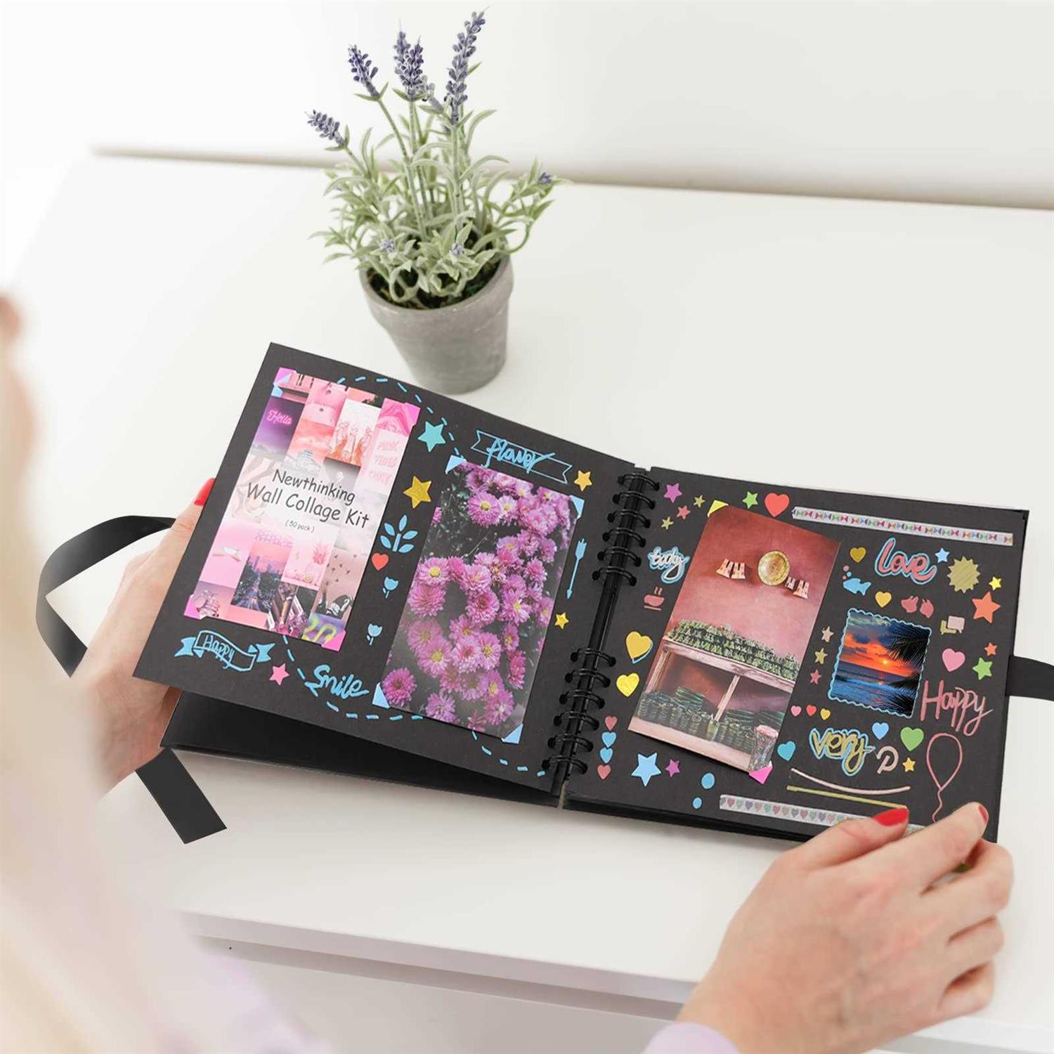newthinking diy photo albums scrapbook, 80 pages a4 hand-posted couple photo album with stickers and marker pens for guest bo