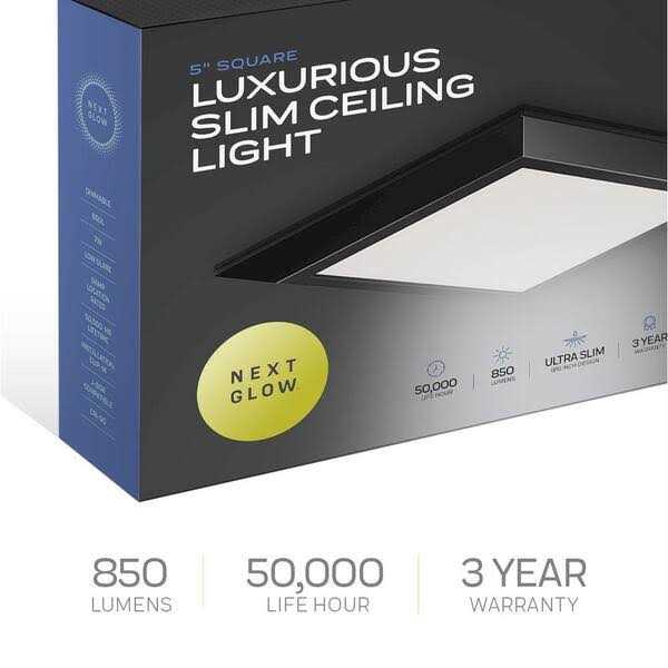 A perfect blend of form and function, NEXT GLOW Ultra Slim Luxurious Ceiling Light delivers the latest in Lighting technology, all within an ultra-slim package. Enjoy up to 50,000-hours of high-effiency lighting, over 50-times longer than the average 75-Watt incandescent bulb. More than just elegance, the versatility of the bulb makes it a perfect for a variety of settings and rooms. Its sleek, flush-mount design installs on a junction box and with hassle-free, Snap-n-Switch installation, you can illuminate your space in a matter of seconds. Product Features Up to 50,000-Hours Lifespan Ultra-Slim Design Glare-Free Flicker-Free Snap-N-Switch Clip-in Installation (on J-box) Surge Protected Dimmable Damp Location Rated effective and efficient lights changing light bulbs over and over again is exhausting and money-consuming. Switch to a more technologically advanced option that saves you time, energy and money. Perfect for many locations including living room, kitchen, basement, bathroom, office, closets, new and existing construction. Available in multiple colors, finishes and shapes so you get the right light for you. Super safe and durable with corrosion protection and rust prevention.