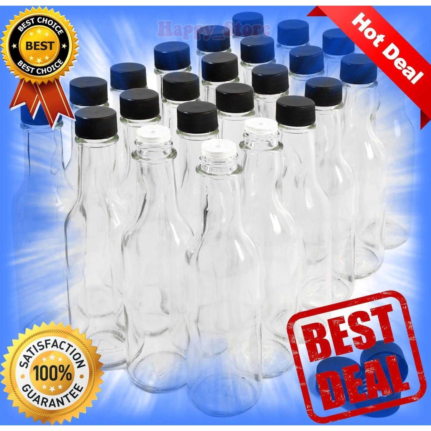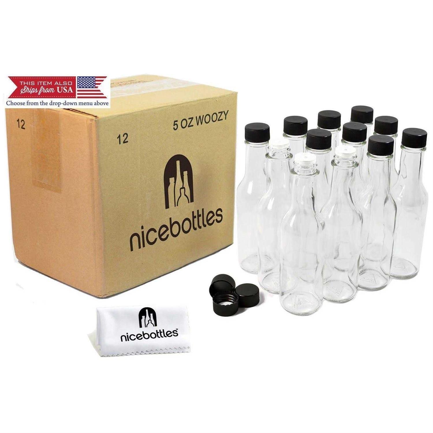 These empty glass hot sauce bottles are the perfect containers for your homemade heat! With a dasher top included, they re great for storing and serving hot sauce. Bottle is made of clear glass and comes with a black screw cap.24 Empty Hot Sauce Bottles, Clear Glass, Packed in 2 Cases of 12 with PartitionsCapacity: 5 Fl Oz, Bottle Dimensions: 6.68 Height x 1.81 DiameterIncludes Dripper Inserts and Black Screw Caps with Food Grade LinerGreat for Bottling Your Homemade Hot Sauce! Also Includes 3 Extra Screw Caps and Dripper Inserts, and 1 Advanced Micro Fiber Cleaning Cloth, Perfect for Wiping Clean Your Glass Bottles or Smart Phone Screen!