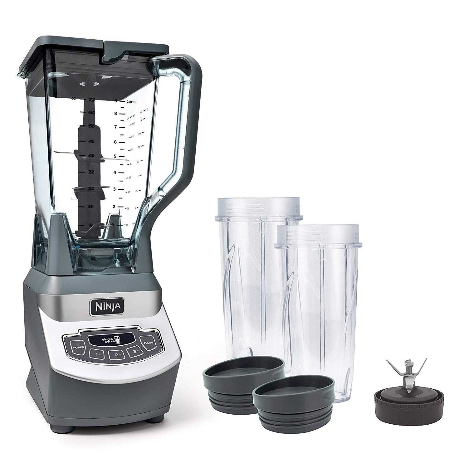 Ninja Ninja Professional Blender Blender Countertop Blender 1,100 watts 72-oz 64-oz 16-oz Single Serve Variable Speed Ninja Professional Blender with Nutri Ninja Cups has 1100 watts of professional performance power with 3 speeds, pulse, and single-serve functions. 72 oz. Total Crushing Pitcher pulverizes ice to snow in seconds for creamy frozen drinks and smoothies. Two 16 oz. Nutri Ninja Cups with To-Go Lids are perfect for creating personalized, nutrient-rich drinks to take on the go. Dishwasher-safe and BPA-free parts. Includes one 1100-watt base, 72 oz. Total Crushing Pitcher, and two 16 oz. Nutri Ninja Cups with To-Go Lids. Get ready to become the master of smoothie making. The Ninja Professional Blender is a high-powered crushing, blending and processing machine. The blender jar features Total Crushing blades that blast through ice and frozen fruit in seconds. The XL 72-ounce capacity is excellent for making creamy, frozen drinks and smoothies for the entire family. And with the Nutri Ninja cups and to-go lids, it’s easier than ever to take delicious, nutrient-packed juices on the go. All the parts are BPA free and dishwasher safe, so you clean up is a snap. Need some ideas to get started Flip through the included Recipe Inspiration Guide for yummy smoothie and savory recipe ideas.