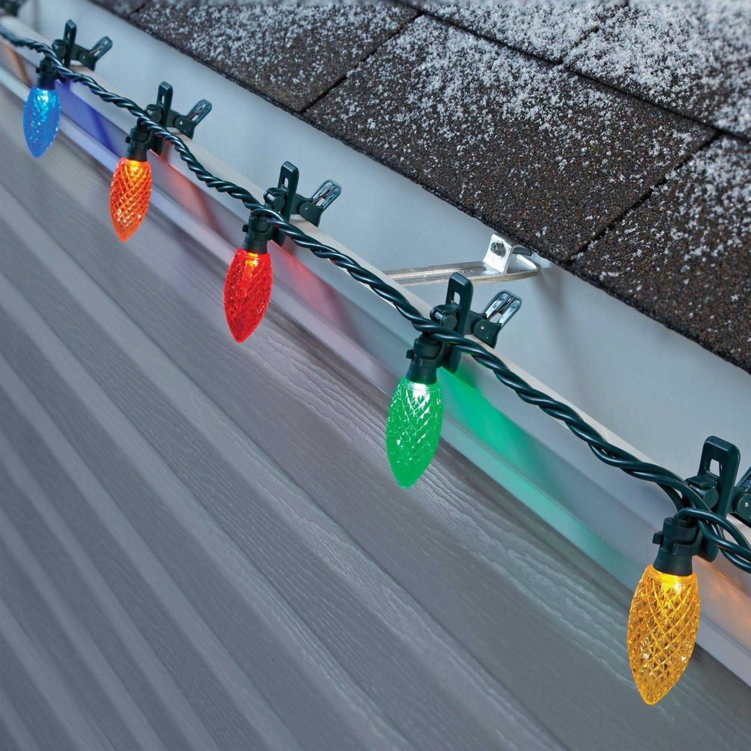 Spend less time hanging lights and more time celebrating with your family and friends this holiday season. Decorate your home in half the time with the 100-Bulb Quick Clip Christmas String Lights by NOMA. Quick Clip technology makes installing these festive lights a breeze. With built-in spring-loaded clips, these 8-inch spaced bulbs easily and securely attach to your roof without the need for nails or staples that leave marks on the exterior of your home. Each of the 100 multicolor LED bulbs is cool to the touch and rotates 180-degrees, allowing you to put each diamond-cut style light in the perfect place. Durable weather-sealed C9 bulb sockets prevent damage and can withstand harsh winter weather conditions. The 66.8-foot strands are designed with plug-ins at both ends, allowing you to link multiple strands for decorating all the way around your home. Decorate for the holidays this year without the need for nails and staples with the Quick Clip Christmas String Lights by NOMA.