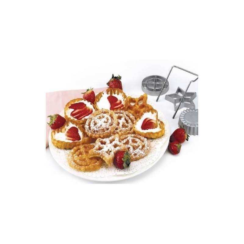 A Scandinavian tradition & delicacy! Make light, crispy cookies, crackers & delicious desserts. Rosette molds the batter and deep fries making crispy cookies you can either dust with powdered sugar or frost. Timbale molds shells to be filled with vegetables or meat for appetizers or fill with fruit and top with cream for a mini dessert. Made of cast aluminum with a stay cool wood handle. Recipes and instructions included.