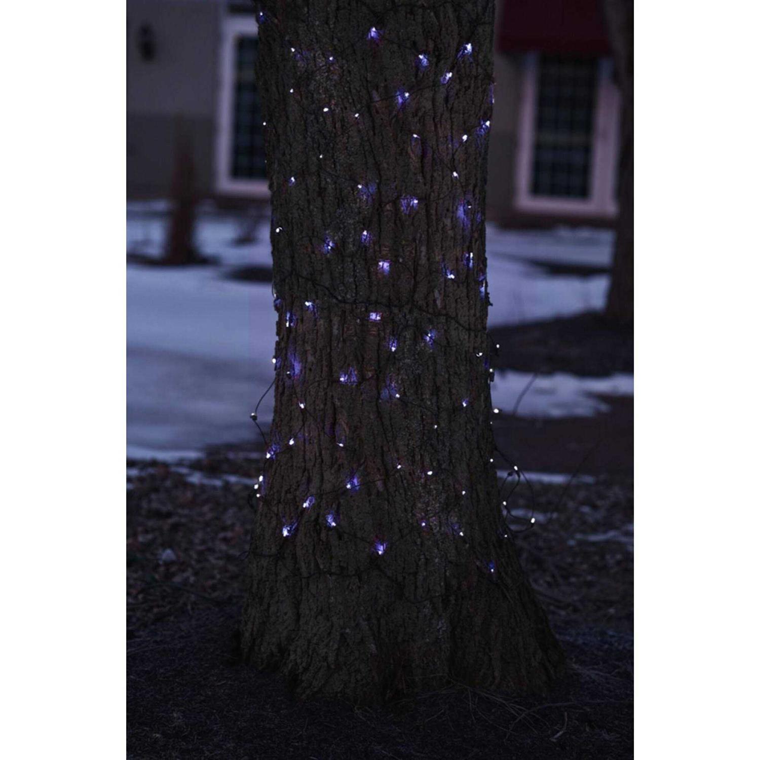 Clear mini net style tree trunk wrap brown wire christmas light featuresthe fast and easy way to decorate trees and more in just minutes simple and easy to use color: clear bulbs and brown wire bulb size: mini number of bulbs: 150. Dimensions: 2′ x 8′. Total lighted area: 16 sq. Ul listed for indoor or outdoor useif one bulb burns out the rest will stay lit comes with replacement bulbs and spare fuses. Weight: 1 lbs.