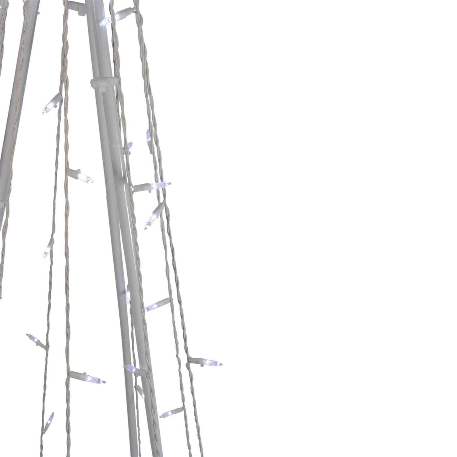 This beautiful show cone tree is the perfect addition to your holiday yard decor. Create your own wonderland by effortlessly adding color in a unique and modern way. Perfect for any area of your yard that needs a special holiday touch. Cool has a very slight tint it has the look of ice and is used to create a true icy wintry scene Crystalline star tree topper is lighted with lights quick and easy assembly LED lights to use 90% less energy. Super bright bulbs. Bulbs last up to 100 000 hours. Durable non-glass replaceable bulbs. Cool to the touch metal frame and stand Ground stakes included UL listed for indoor or outdoor use Contains 1 plug with end connector which allows you to stack multiple items together.