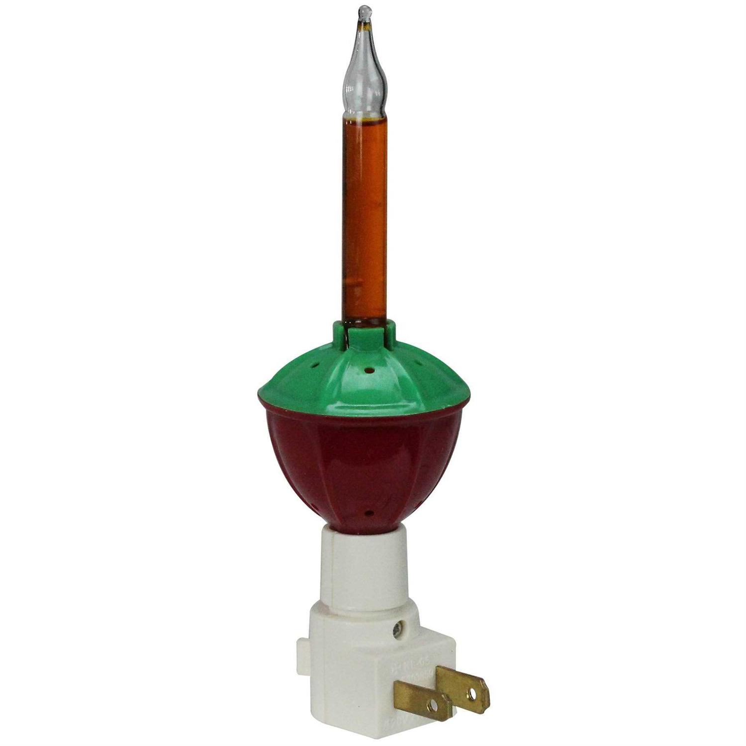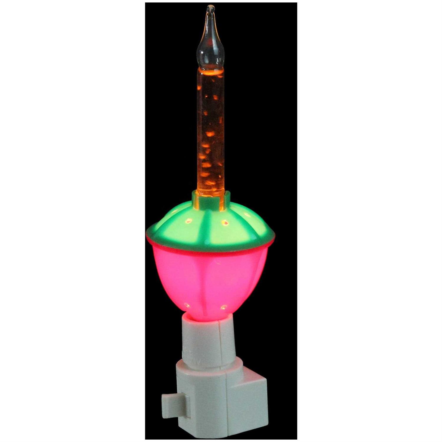 Bubble night light is sure to perk up any room with its classic design and shimmering glow. Amber liquid bubbles once the light warms up and is complemented by the red and green colors. Use at Christmas time or all year round.360 degree swivel plugUL listed for indoor use onlyPlugs into any standard