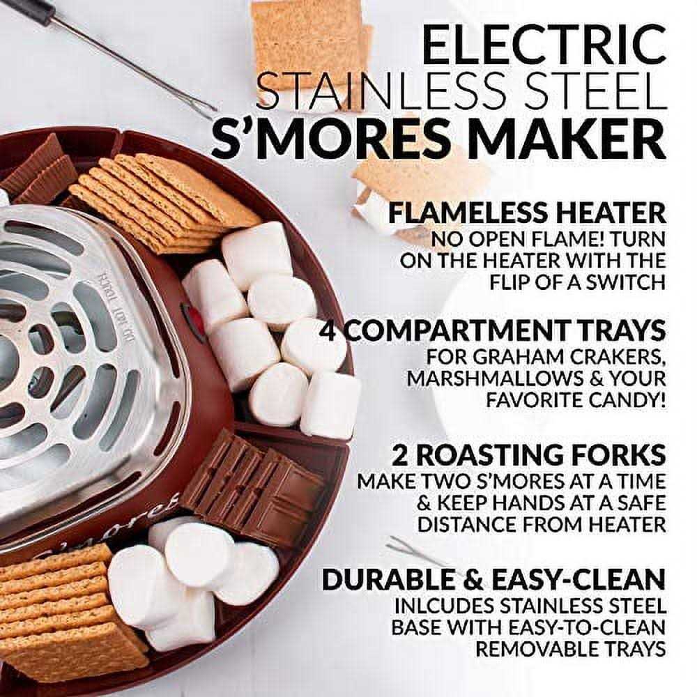 Skip the hassle of building a bonfire and bring the taste of the campfire right into the kitchen! Simply fill the compartment tray with marshmallows, chocolate and graham crackers, then roast the marshmallows to a perfect golden brown over the flameless electric heater and enjoy.