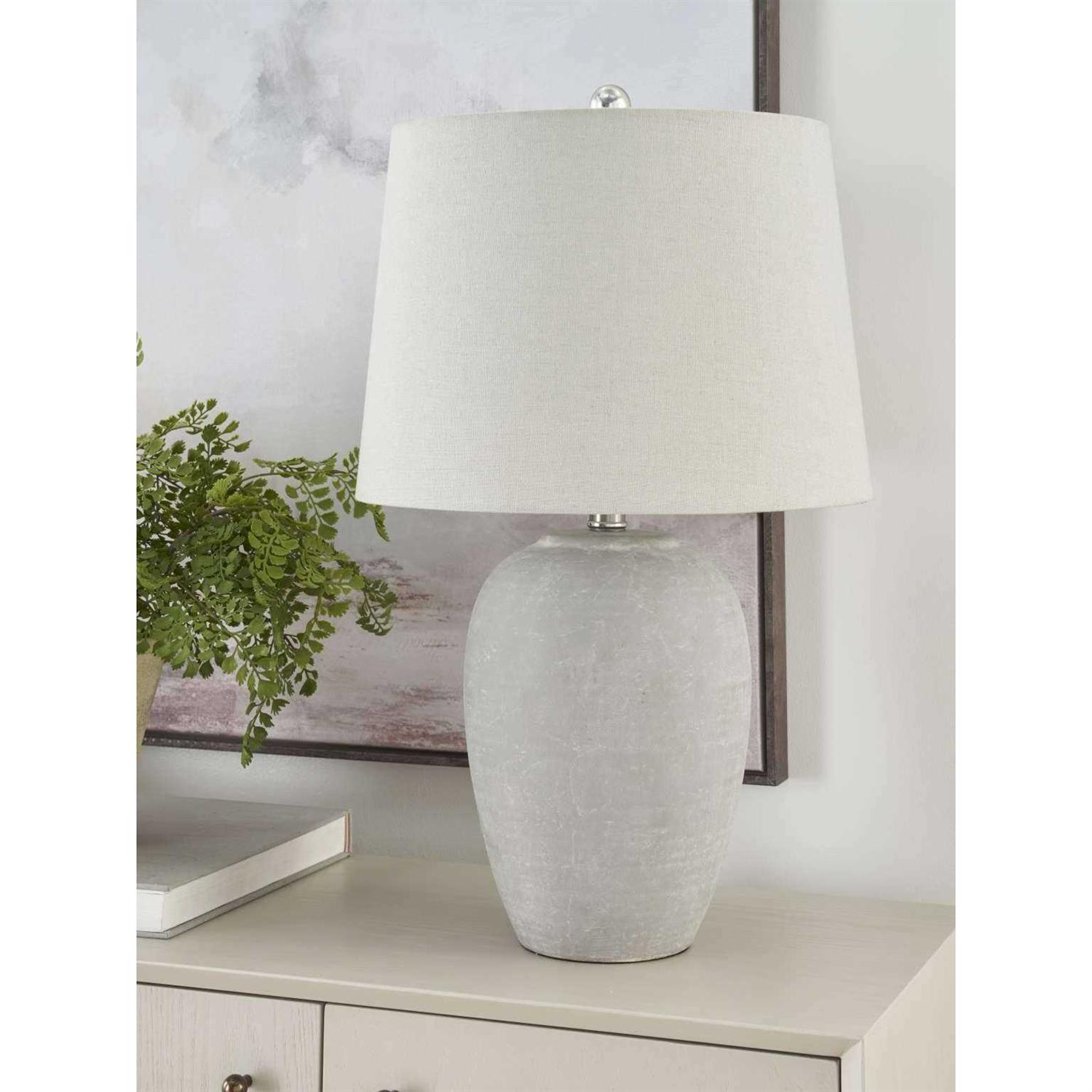 From Art Deco to modern industrial, Nourison Lighting puts the spotlight on trendy styles. Bring raw beauty to your surroundings with this modern table lamp. Made from cement in a classic urn shape, it adds a distinctively organic vibe to your side table or nightstand. Enjoy a relaxing vibe with its tapered drum shade that diffuses a cool glow.