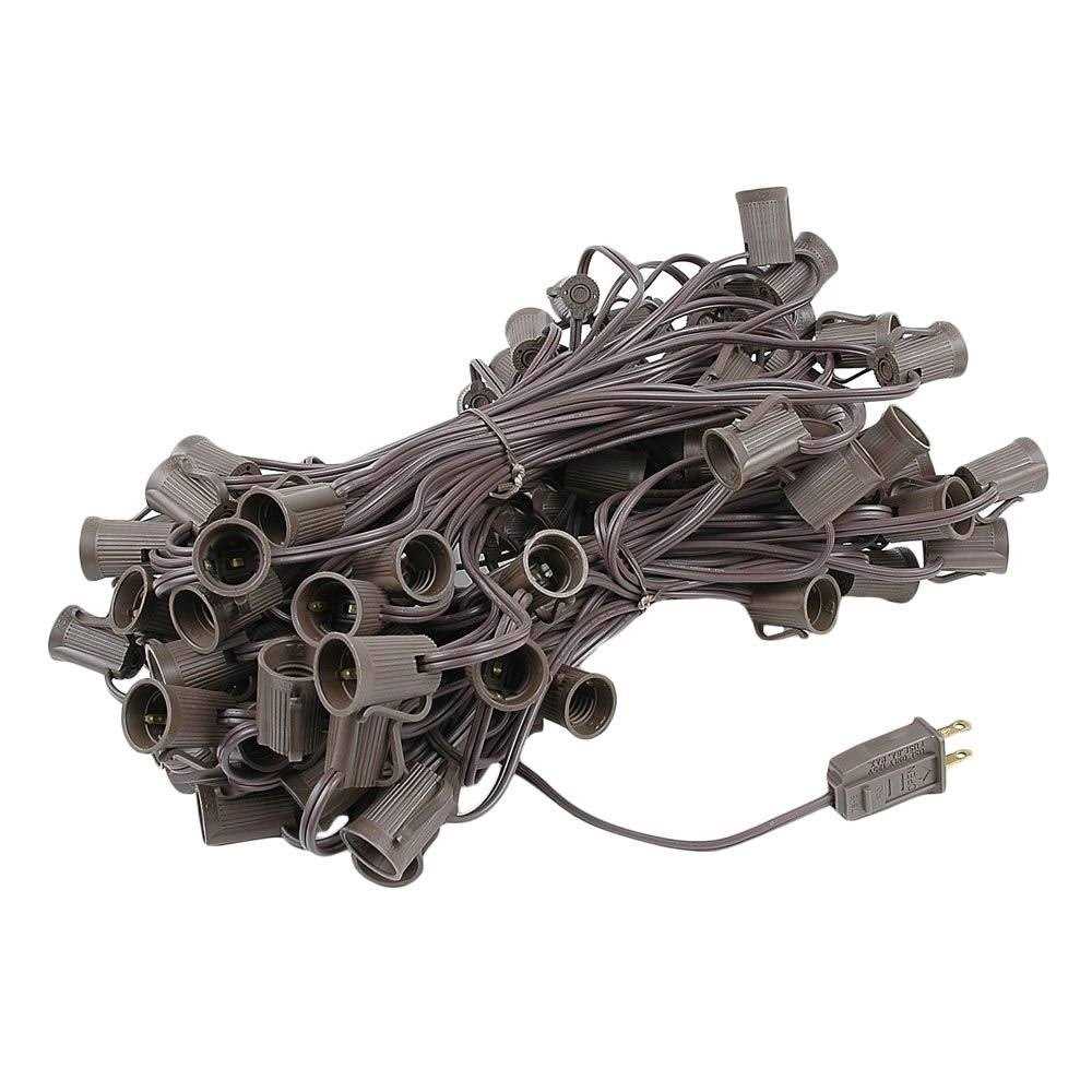 Product Description Use this 30m long C9 stringer of Brown wire with 100 Intermediate base sockets spaced 30cm apart. This string is the classic choice for decoration of your home or business for the holiday season. Each stringer is made of 18-gauge SPT-1 wireand usesAdmiral brand sockets that are durable andUS-patented. Use any of our C9 incandescent, C9 LED, G50 incandescent, G50 LED, and S11 incandescent Intermediate base bulbs to make your Christmas lighting display shine. Safe for outdoor usage.