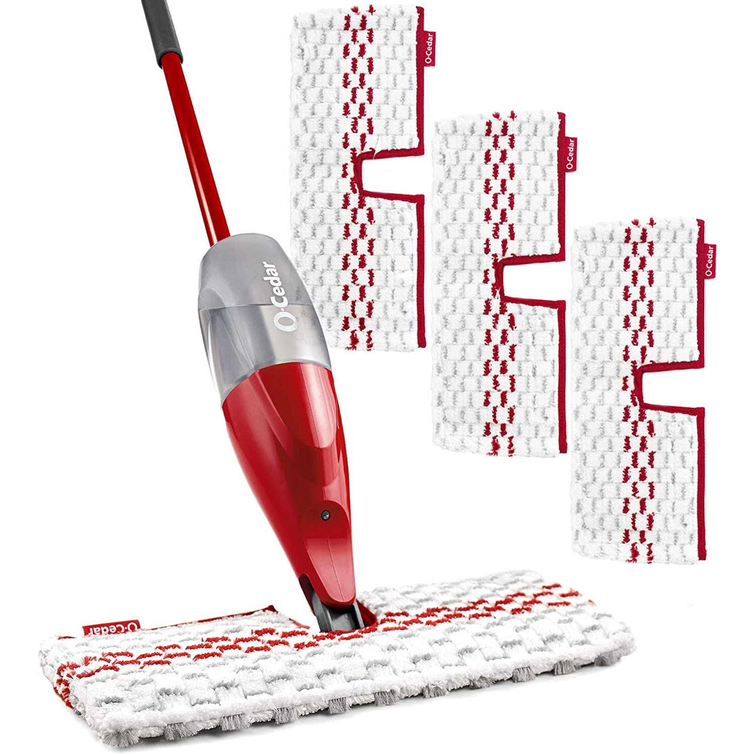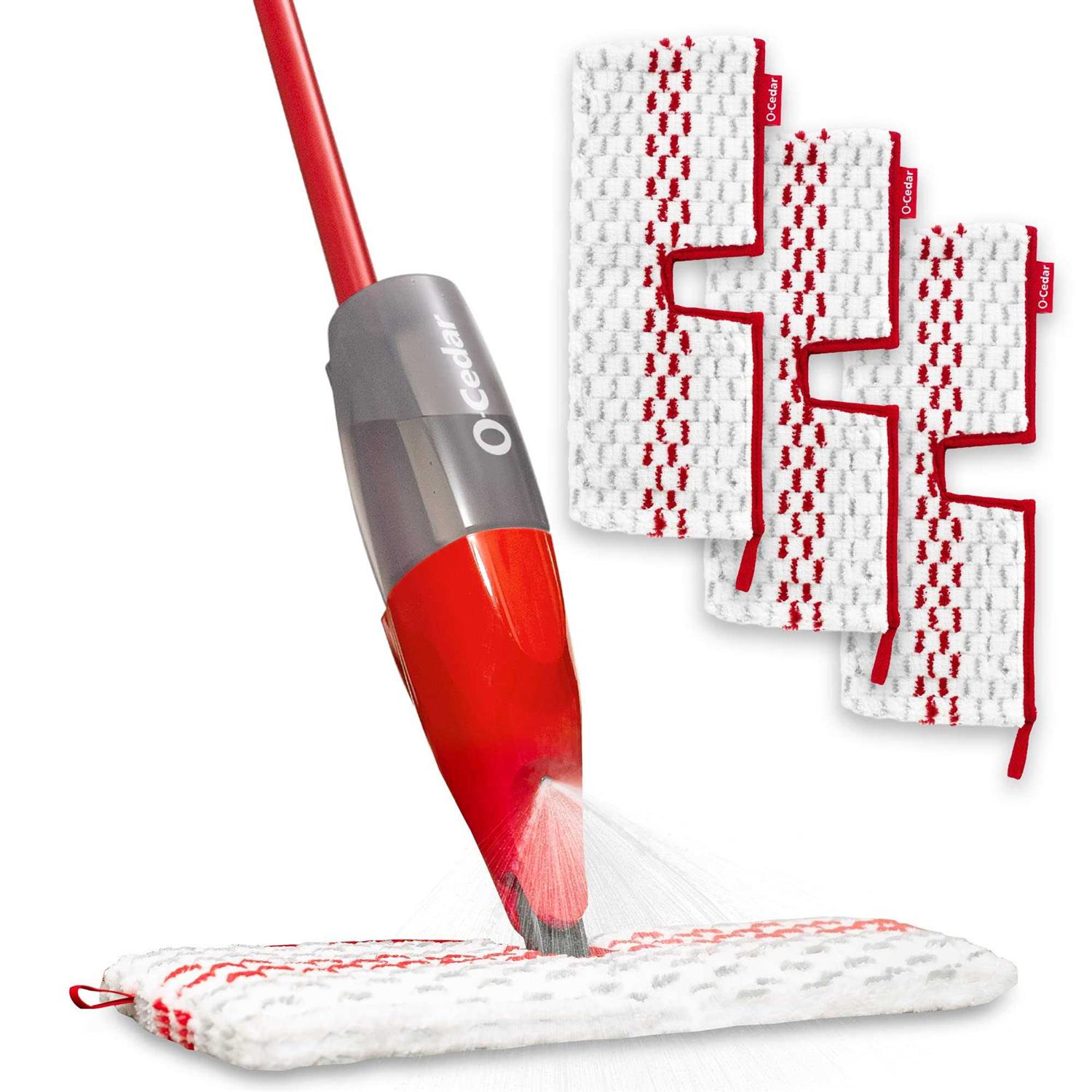 Dust Mops by O-Cedar. Details:Make cleaning easier! O-Cedar’s double-sided microfiber spray mop delivers a better clean—not only because it saves cleaning time when compared to the leading spray mop but it removes dirt and grime with just water. The ProMist MAX is a better and faster way to truly clean your floors! To remove refill, step on microfiber strands and pull mop handle up to separate base from mop head. To replace refill, align microfiber mop head with base and push down until it snaps securely in place. To wash, machine or hand wash up to 10 times and lay flat to dry. *Removes over 99% of E. coli and Staph. aureus from pre.