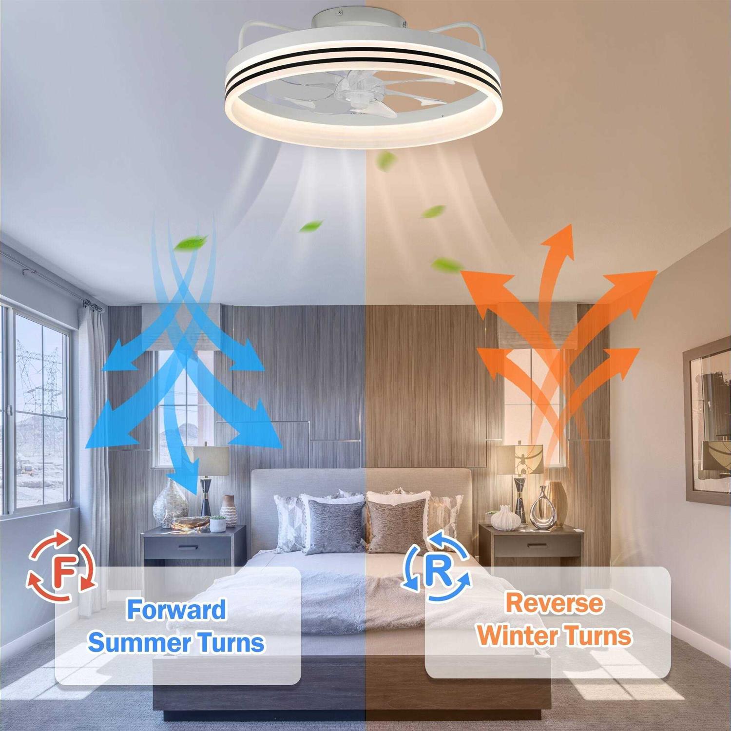 Oaks Aura Bladeless Smart App Remote Control Low Profile 6-Speed Ceiling Fan DC Motor Flush Mount Dimmable Lighting