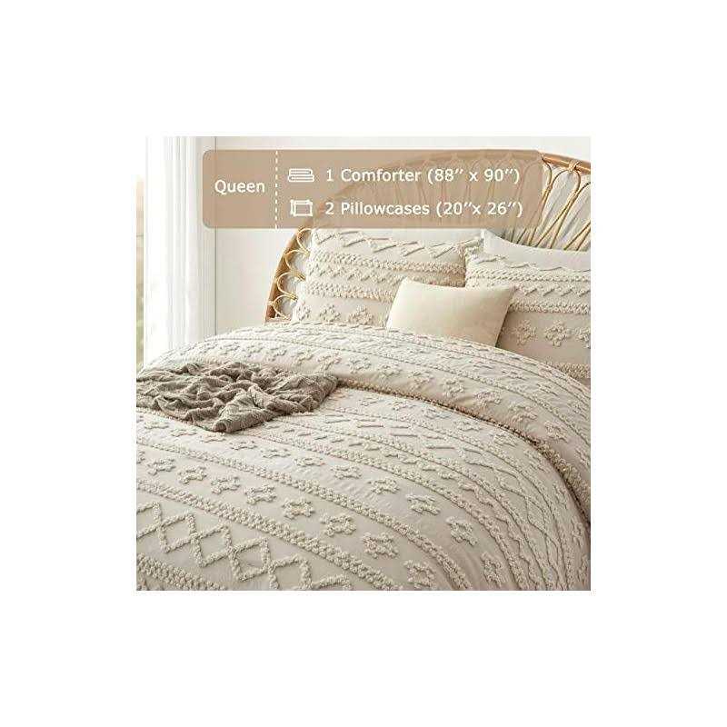 Tufted Design – Our boho beige comforter with a tufted geometry pattern brings a elegant atmosphere to your bedroom, living room or anywhere else. Soft & Breathable – The bedding set filled with high quality polyester, which offers optimum breathability and fluffy. Soft fabric keeps you cozy and warm, so you can enjoy it in all seasons. Thoughtful Details – Oli Anderson shabby chic comforter has a hidden neat stitching design that prevents the filling from shifting or clumping after washing. Package & Size – Queen size comforter set includes 1 beige comforter (90″x88″) and 2 pillowcases (20″x26″) without pillow insert. Easy Care – Machine wash cold separately on a gentle/delicate cycle. Tumble dry on low. Due to the vacuum-sealed packaging of the bed comforters, tap gently to make it fluffy before first use. Fabric: /b br 100% polyester br br Features: /b br Oli Anderson comforter sets are the perfect way to add extra warmth to your daily life. With these comforter set, your can protect youselfs from dust and wind in the street, outdoors, tourism, sports and other occasions. Our products have been favored by European and American consumers for many years.