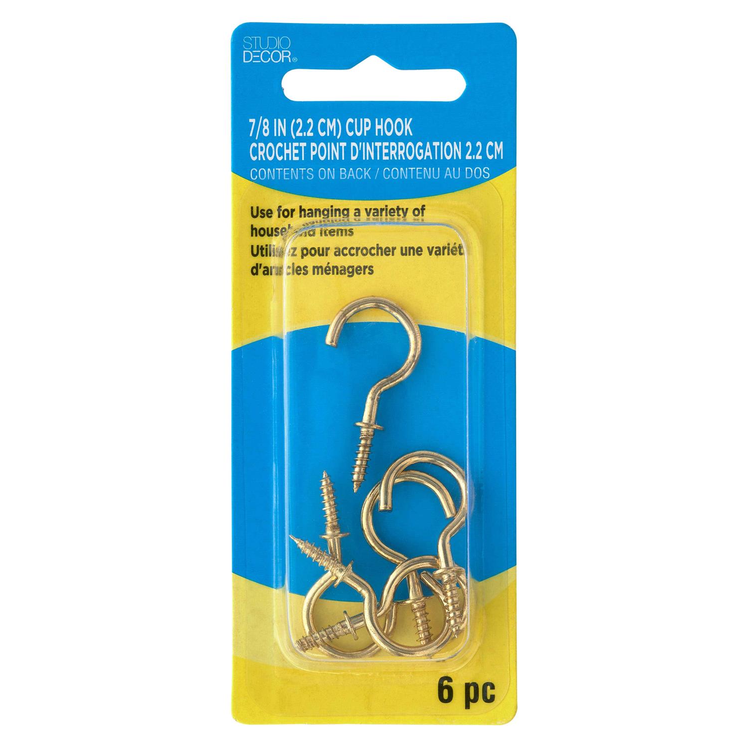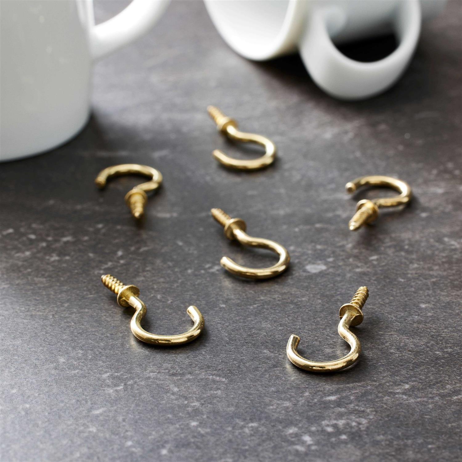 Can be used to string cord, hang coffee mugs or retain blind tie backs. Sharp points bite into wood quickly and easily. For use in exterior and interior applications. Rust resistant classic brass finish.