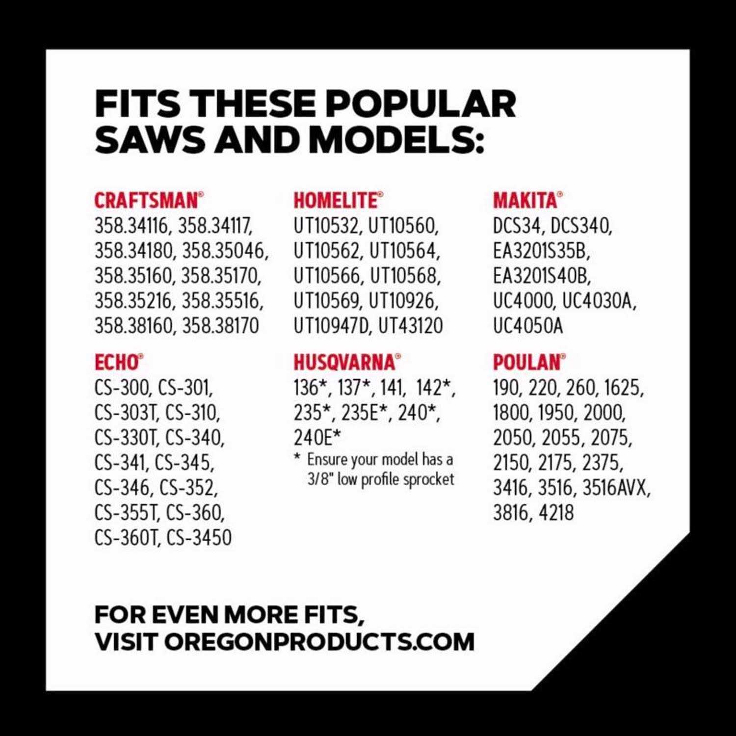 This 16 in guide bar and chain combination features a 3/8 in low-profile chain that is ideal for homeowners and occasional users who want a low-vibration, low-kickback saw chain. The chamfer chisel cutters offer outstanding performance and are durable, easy to maintain and forgiving. LubriTec system keeps your chain and guide bar oiled for less friction and longer life. LubriTec system keeps your chain and guide bar oiled for less friction and longer life.
