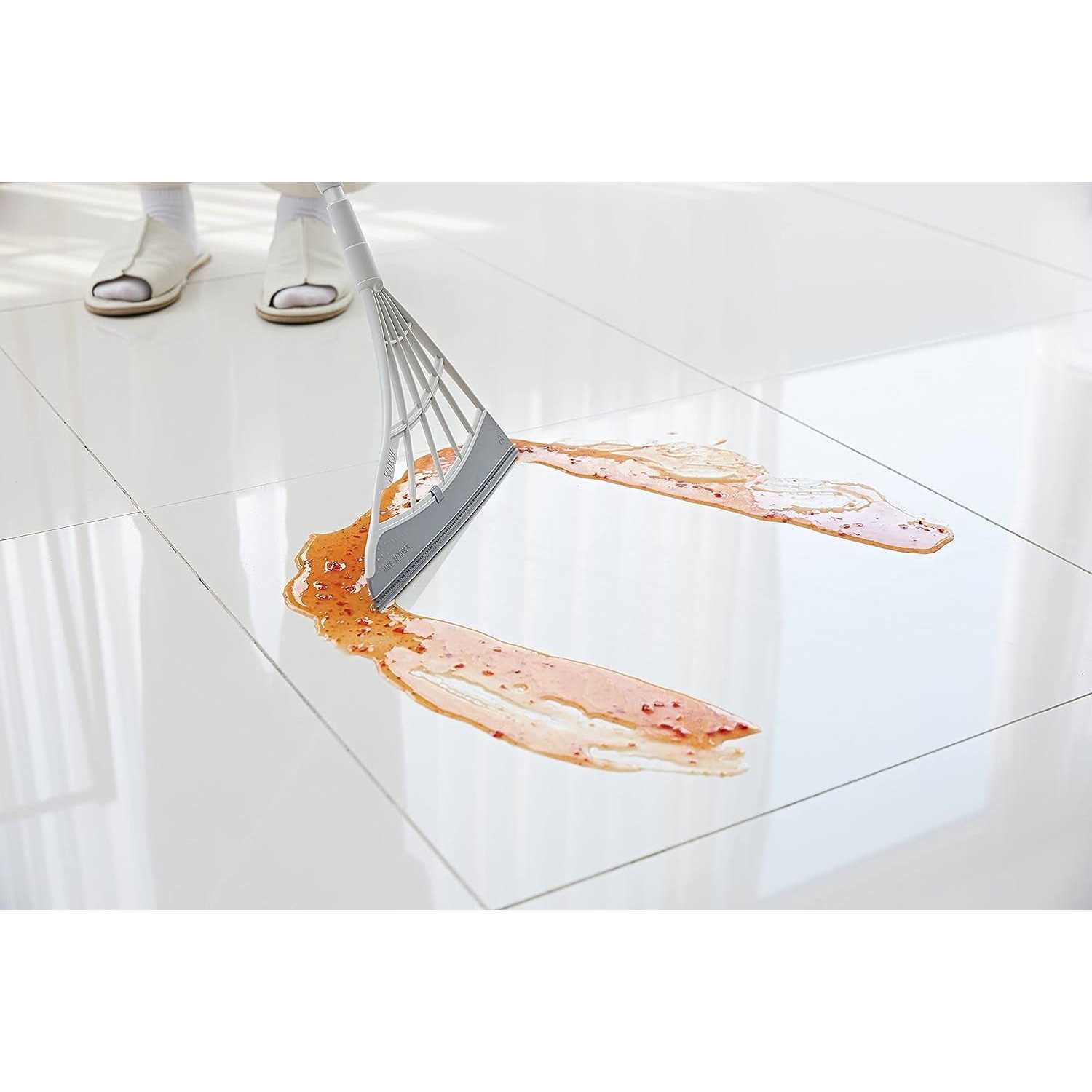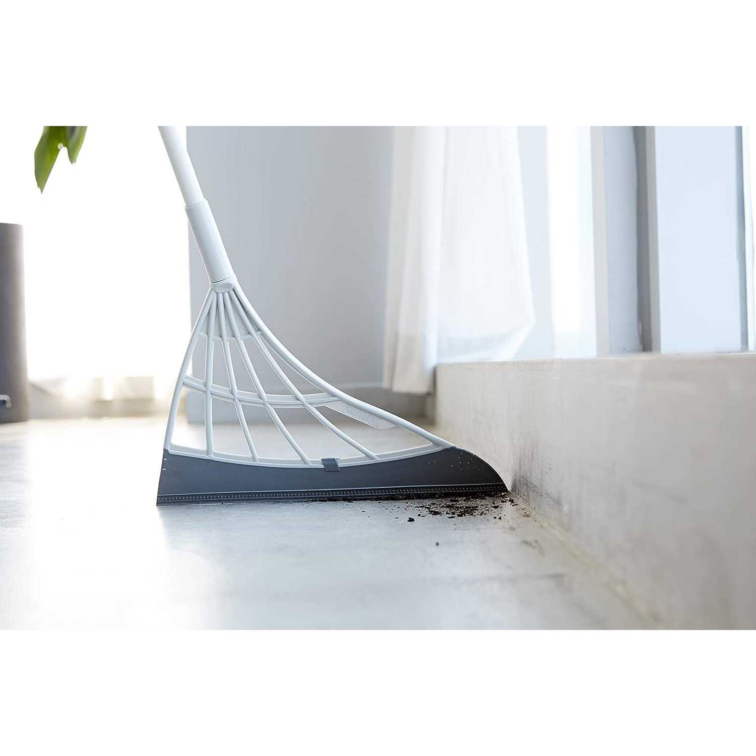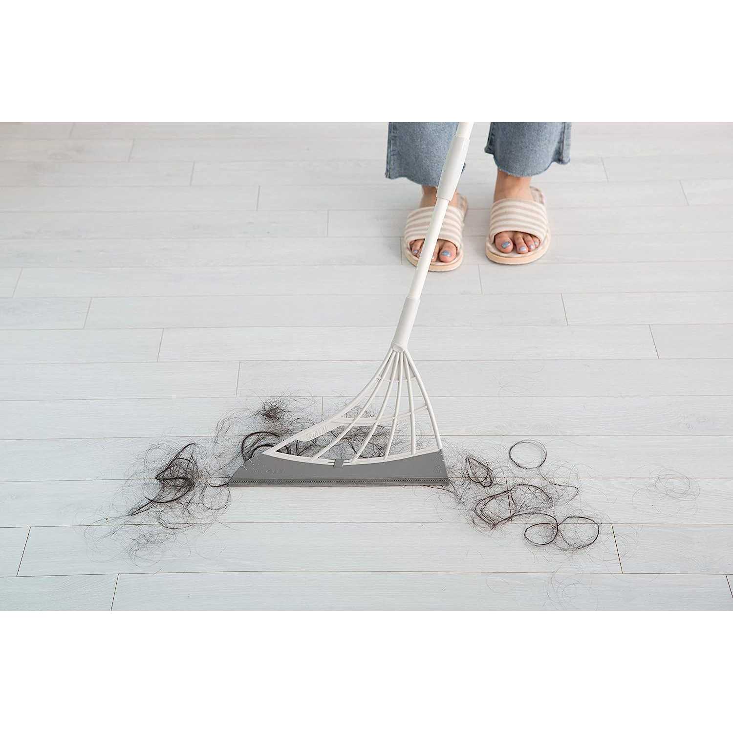 PATENTED QUAD-BLADE TECHNOLOGY: Unique design silicone edge creates static-electricity when used to attract hair and fine dust. Efficiently cleans every nook and cranny of the house. EXTREMELY VERSATILE: Sweeps up every shard of broken glass, liquid spills, fine dust, coffee granules, sugar, removes pet and human hairs, and easily wipes up gooey messes such as ketchup, broken eggs. CLEANS ON MANY SURFACES: Carpets, rugs, smooth floors, tile, hardwood, windows, shower walls. Broombi cleans on wide areas as well as tight corners and hard to reach places such as under beds and sofas. WASHABLE, EASY TO MAINTAIN, VERY HYGIENIC: Unlike ordinary brooms, Broombi will never have dirty and unsanitary bristles. Simply rinse the smooth blades after each use to keep Broombi and your house clean and hygienic. HIGH-QUALITY MATERIALS: Broombi is very lightweight yet extremely durable, made of a solid construction that will last for years. ONE-PIECE TELESCOPIC POLE: A sturdy one-piece adjustable length telescopic pole with anti-corrosion coating. The pole length can be adjusted from 36″ – 55″ for any cleaning job. No assembly required.
