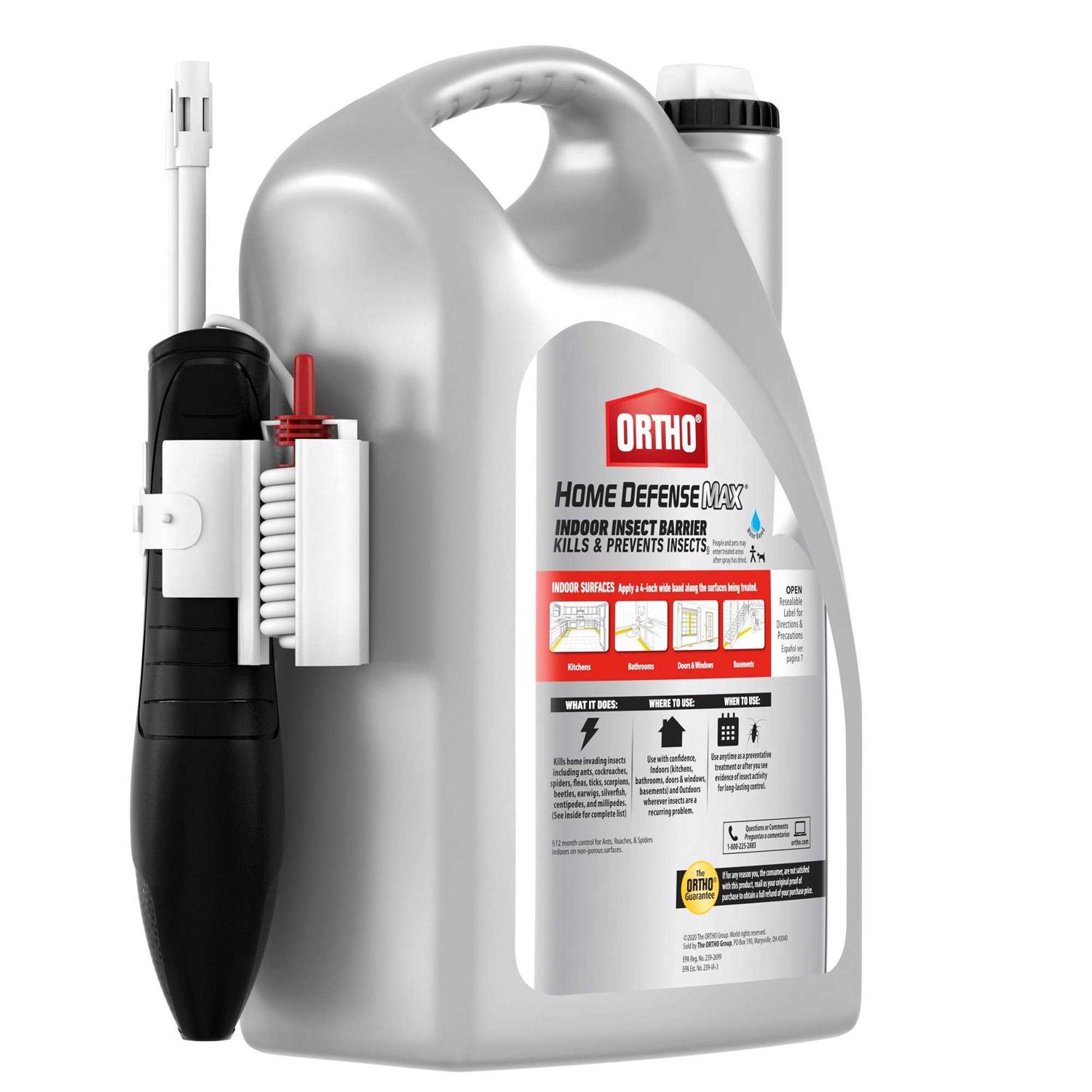 Create an indoor bug barrier against all common household insects with Ortho home defense max indoor insect barrier. Kills ants, cockroaches, spiders, fleas, ticks, scorpions, beetles, earwigs, silverfish, centipedes, millipedes and other insects as listed. This fast-drying formula has no fumes and leaves no stains so you can use with confidence indoors. It spreads easily into cracks, crevices, under appliances and into hard to reach places where insects hide-in kitchens, bathrooms and basements and around doors and windows. The extended reach comfort wand reduces back bending and helps reduce hand fatigue when applying. Use Ortho home defense max indoor insect barrier anytime you see evidence of insect activity or need to put down a preventative barrier to keep bugs out.