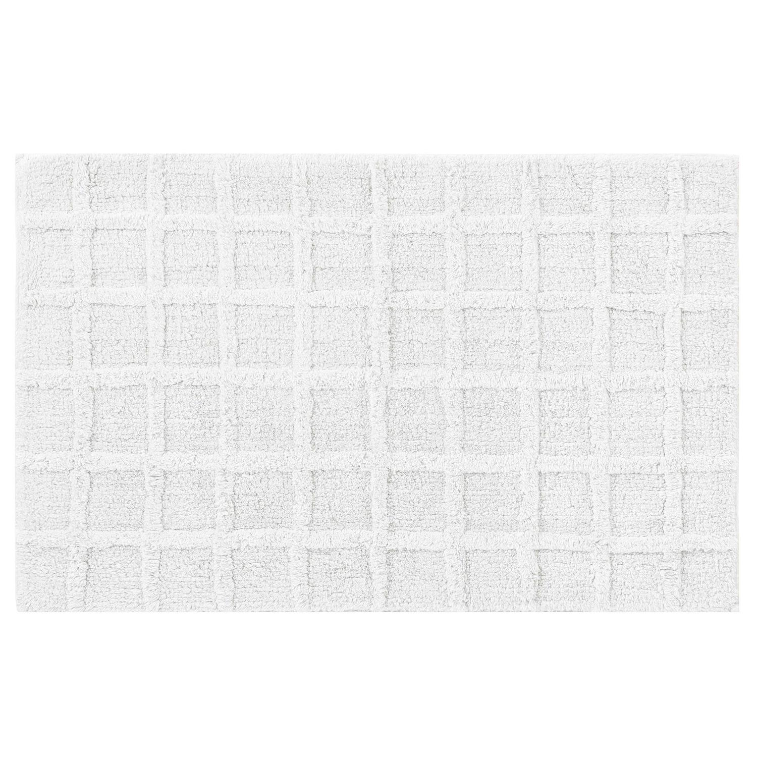 Add a clean classic touch to your bathroom decor with the Cameron Bath Rug. Constructed with 100% Cotton over-tufted panes that are highly absorbent and it features an anti-skid backing. It is super soft and machine washable for easy cleaning and long lasting durability. Pair this bath mat with the Cameron shower curtain and bedding collection to complete the trending modern look (Each sold separately). The texture rug is 20 inches long by 30 inches wide, which fits perfectly with most modern vanities.