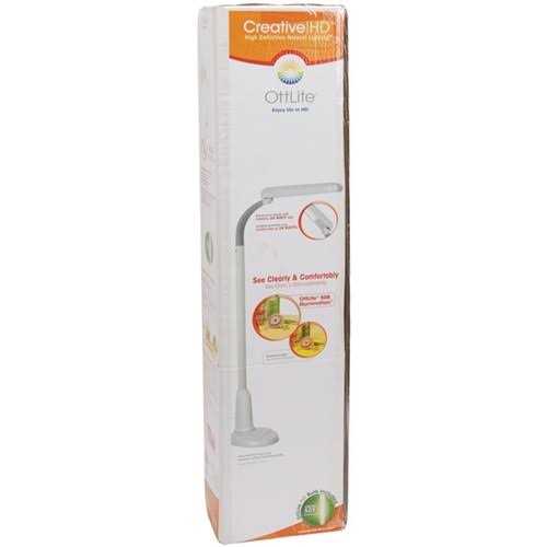 Illuminate large workspaces with the powerful and versatile OttLite Task Plus Floor Lamp. Specially designed to make seeing colors accurately and details clearly OttLite Illumination helps reduce eyestrain caused by glare and distortion. Perfect next to your worktable chair or sewing machine this lamp features a wide shade sturdy yet lightweight base and an adjustable flex neck to position the light right where you need it. Flexible Neck Flexible neck provides infinite adjustment and holds position ensuring proper light placement based on your specific lighting needs. Expansive Shade Wide shade extends out over your work area providing a large field of illumination great for next to your worktable reading chair or sewing machine. Weighted Base Sturdy weighted base keeps lamp firmly in position allowing you to adjust the flexible neck as needed. Includes 24w Bulb Rated to last up to 10 000 hours the 24w PL-C tube provides long-lasting OttLite Illumination. Not all Lighting is Created Equal OttLite is the originator of natural daylight technology with a variety of innovative and functional lighting products that help you do what you love longer. OttLite Illumination gives you true colors clear details and reduced glare and eyestrain all in a low-heat and energy-efficient bulb rated to last up to 10 000 hours.