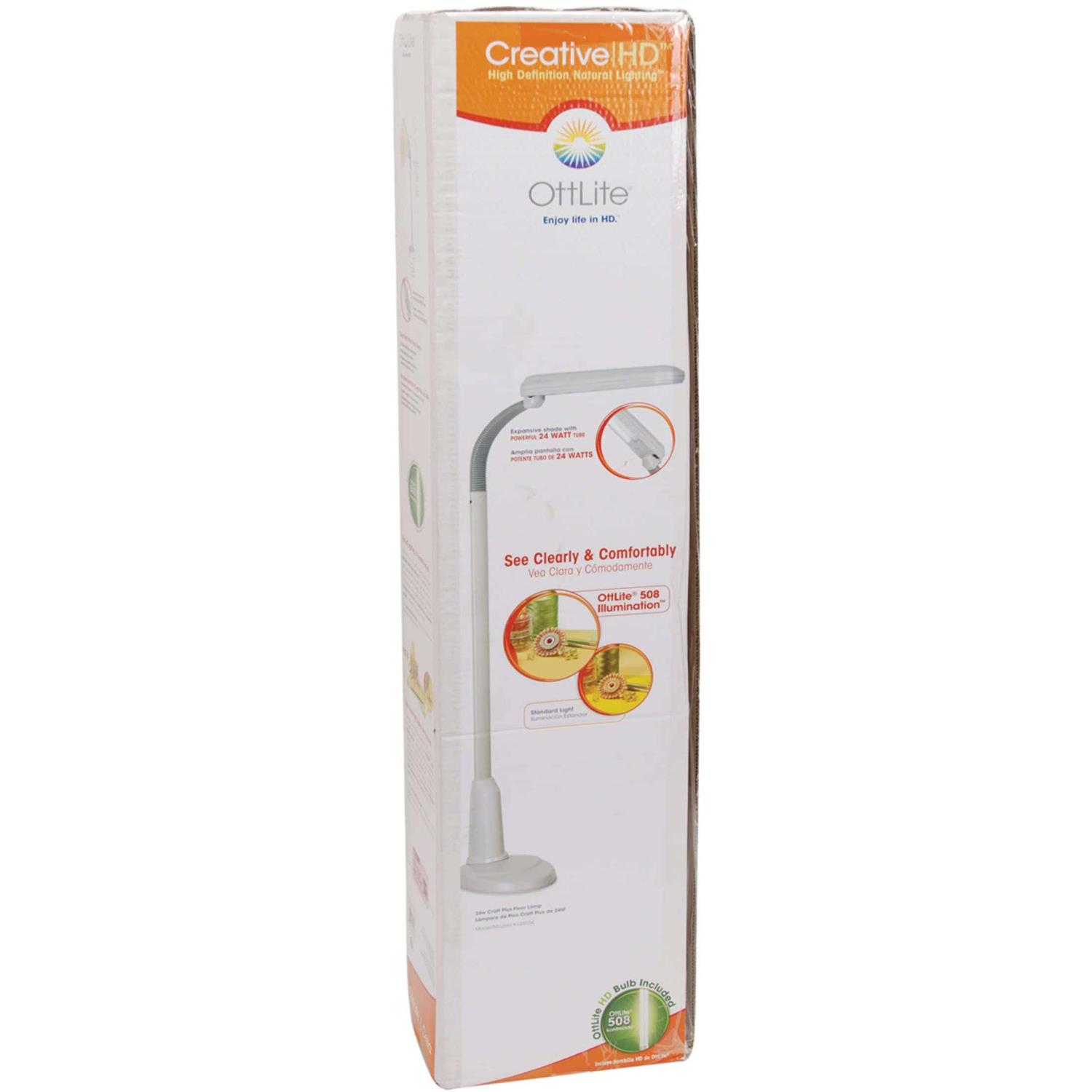 Illuminate large workspaces with the powerful and versatile OttLite Craft Plus Floor Lamp. Specially designed to make seeing colors accurately and details clearly OttLite 508 Illumination helps reduce eyestrain caused by glare and distortion. Perfect next to your worktable chair or sewing machine this lamp features a wide shade sturdy yet lightweight base and an adjustable flex neck to position the light right where you need it. 25″ L x 9. 88″ W x 43. 63″ H.