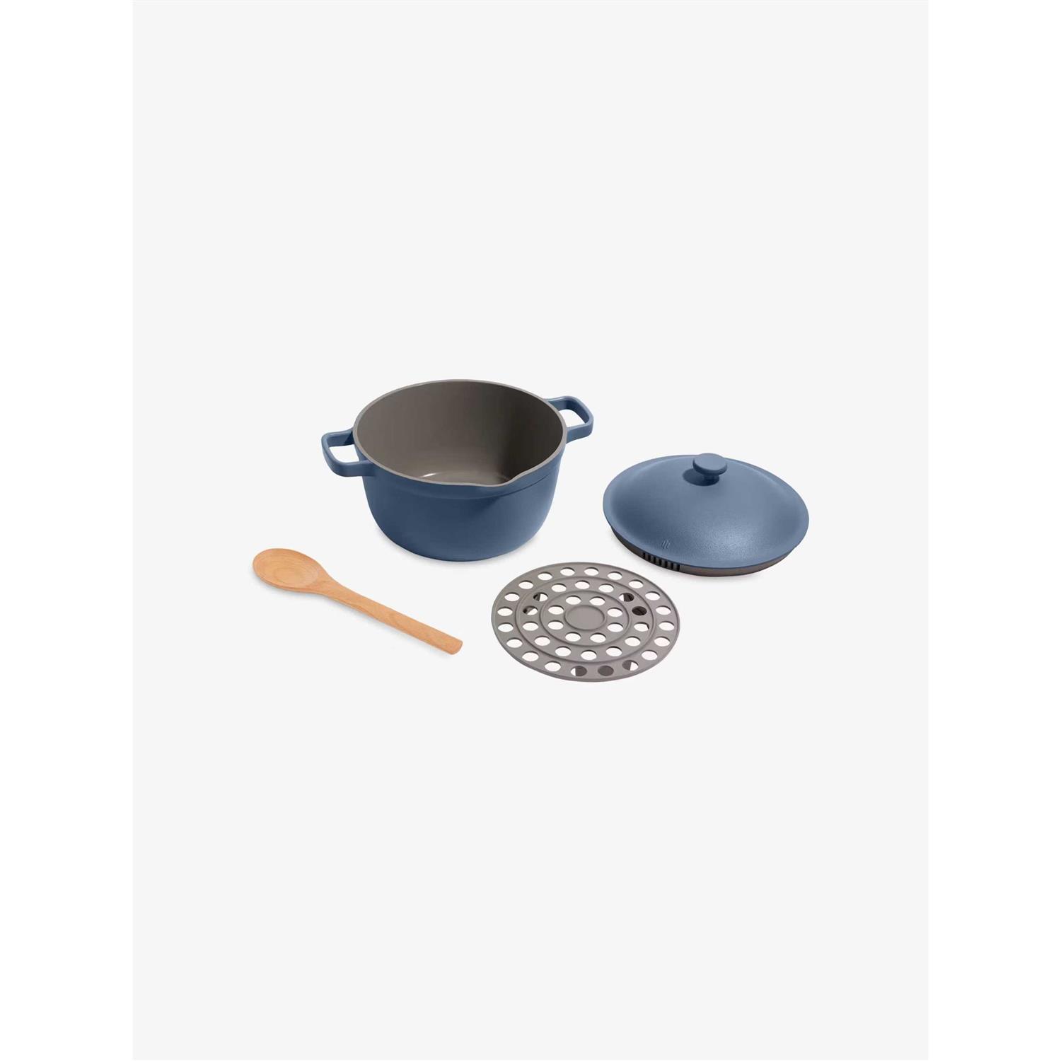 The Perfect Pot is a multi-purpose 5.2 litre pot from the team that brought you the Always Pan. If your kitchen is on the smaller side, this 8-in-1 pot is a space saving saviour. It does it all, from boiling and baking to steaming and braising. It’s oven safe so you can use it for hearty winter soups, slow-cooked stews and rich tomato sauces. Available in a range of gorgeous colours, it’s a useful and eye-catching addition to your cookware collection. Why choose the Perfect Pot? Versatile 8-in-1 pot – save money and cupboard space Deep blue colour looks great in any modern kitchen Made from durable, non-toxic materials High-performance non-stick coating for easy clean-up Compatible with all cooktops, including induction Aluminium interior for fast, even heat The Perfect Pot also includes: steam-release lid, pasta strainer, beechwood spoon and a roasting rack that doubles as a steamer. Care for your Perfect Pot by washing it by hand once cooled. It can be deep cleaned with boiling water and baking soda. Avoid scouring pads, abrasive cleaning agents and metal utensils. About Our Place Our Place is an American cookware brand founded by Shiza Shahid and her husband Amir Tehrani. Their mission is to bring people together around the dinner table to share meals, moments and memories. Their beautiful multi-purpose pans will make cooking easier and more enjoyable, whilst taking up minimal storage space.