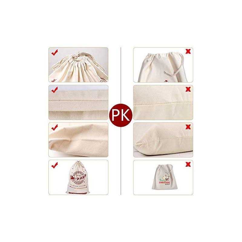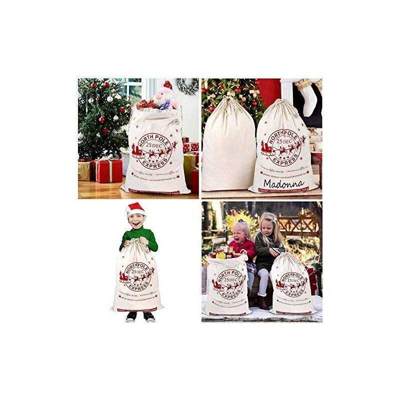 Gift Bags by OurWarm. Details:Packing List: 2 Pieces santa sack gift bags Feature: 1) Color: Beige 2) Material: Canvas 3) Sturdy & thick and reuse Description: This personalised santa sack is a perfect gift in Christmas for kids or family and decoration for Santa under the tree as well. AerWo canvas bags can easily wrap large gift or hold multiple small items. Where There is Amazing Party, There Are Always Starting From Aparty4u. Our Goal is to Let You Take Time to Enjoy The Service.