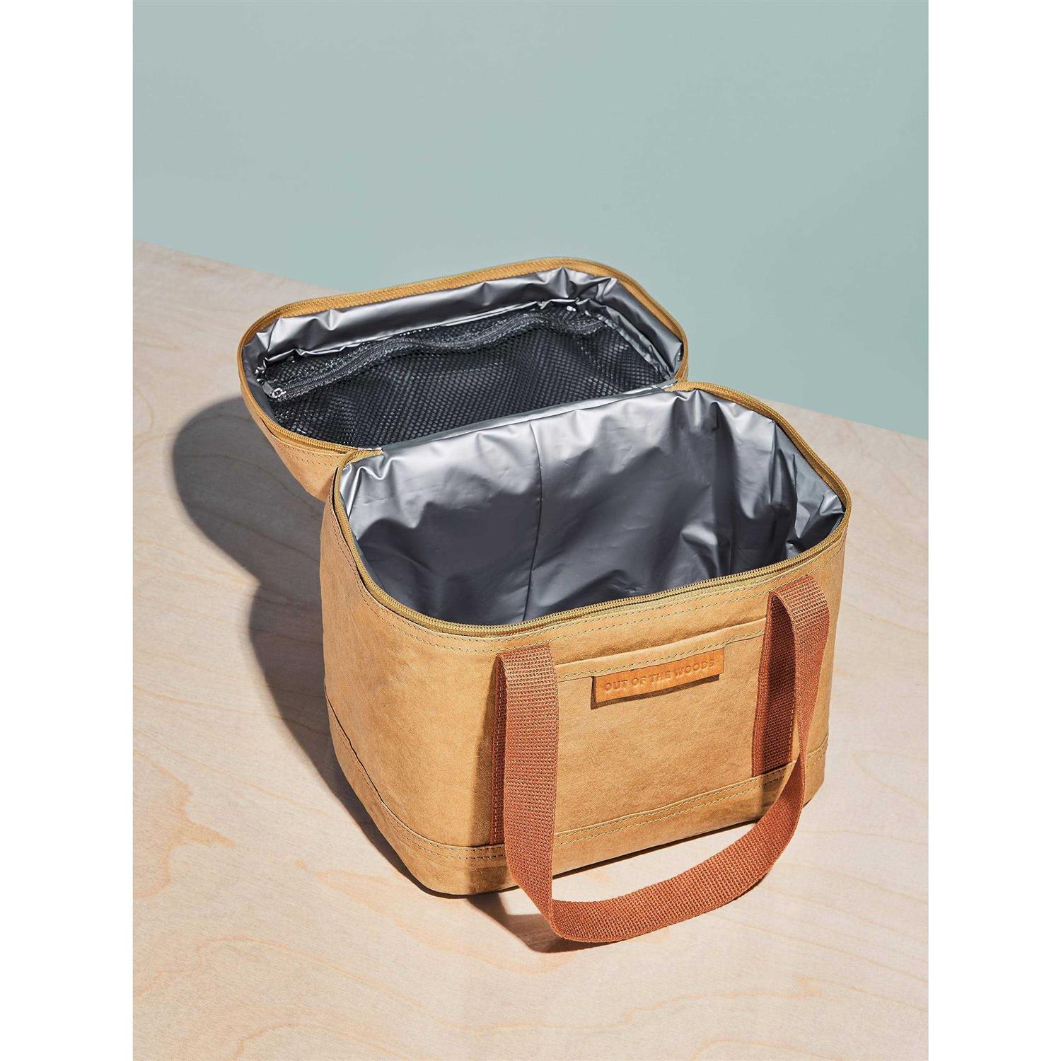 Insulated Care instructions: Please do not put ice directly in cooler bags. Alternatively, you could put ice in sealable reusable baggies to keep things cooler. To clean, wipe easily with warm water and a mild detergent. Dimensions: 9.5(L) x 7.1(W) x 7.8(H)The mini take on our best-selling Walrus Cooler so there is a Walrus for every occasion. Featuring all the same loved details, including inner mesh pocket for your reusable utensils and an outer pocket for your keys or phone. All Out of the Woods products feature our signature Supernatural Paper. Its sustainable, vegan, and even washable! This item is also FSC-certified (FSC C153080) ensuring it comes from responsibly managed forests that provide environmental, social, and economic benefits. Since this product is insulated, both the insulation and the Supernatural Paper can be wiped clean with ease.