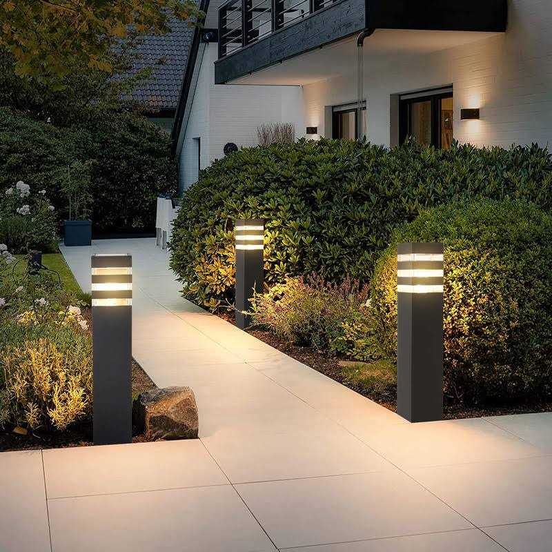 Outdoor Landscape Path Lights Black E26 Patio Porch Exterior Floor Lamp IP65 Waterproof Bollard Light Lawn Lamps Die-Casted Aluminum Square Modern