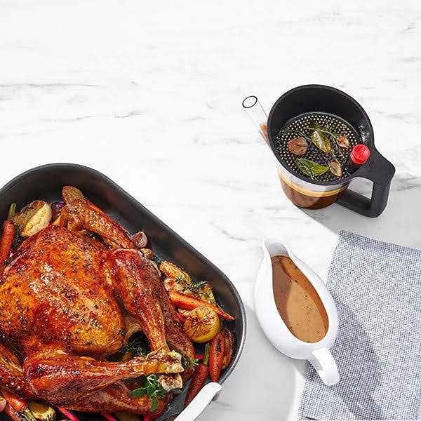 OXO products make everyday life easier, in every room of your home. From cooking and baking to brewing and entertaining to cleaning and organizing, to everyday adventures with little ones. With the OXO Good Grips Fat Separator, making graving has never been easier. Place the stopper in the spout, pour pan drippings into the Fat Separator. The strainer filters even the tiniest bits and the fat will rise to the top. Remove the stopper and pour, the cooking liquid comes out first, leaving the fat behind. Measurement markings make following recipes simple, and the splatter shield prevents splashing while you pour. Keep flavor in and fat out. Features: Crafted from BPA Free Plastic, Silicone Soft non slip grip The strainer filters even the tiniest bits and the fat will rise to the top Measurement markings make following recipes simple Splatter shield prevents splashing while you pour OXO is committing 1% of our annual sales to support environmental nonprofits Dishwasher Safe. Dimensions: 7.62cm (l) x 13.4cm (d) x 22.8cm (w).