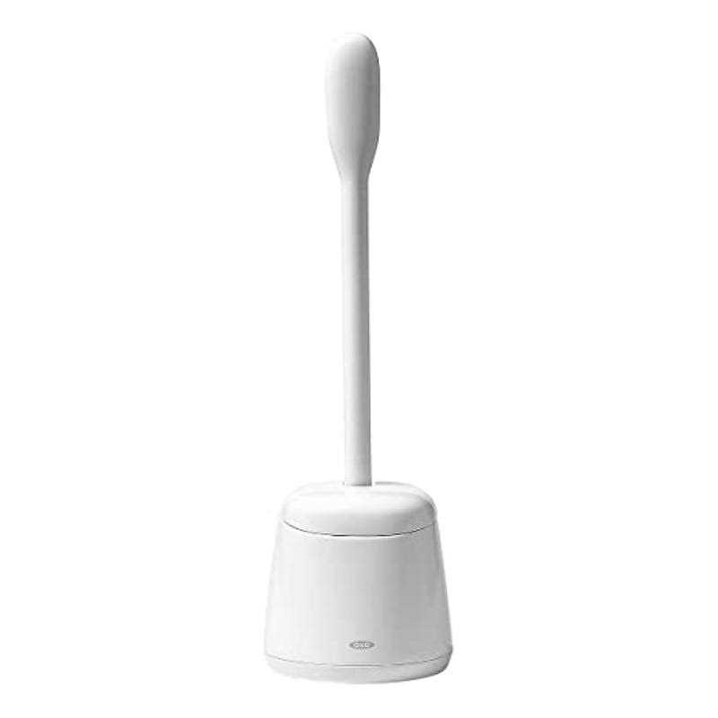 The OXO Good Grips compact toilet brush andamp; canister set makes a subtle, elegant addition to any bathroom. A sleek canister hides the toilet brush when it’s not in use, and automatically opens when the brush is lifted by its non-slip handle. The dual-action bristles for serious scrubbing and cleaning under the rim. The canister’s built-in drip tray catches excess water and promotes fast evaporation through ventilation holes.